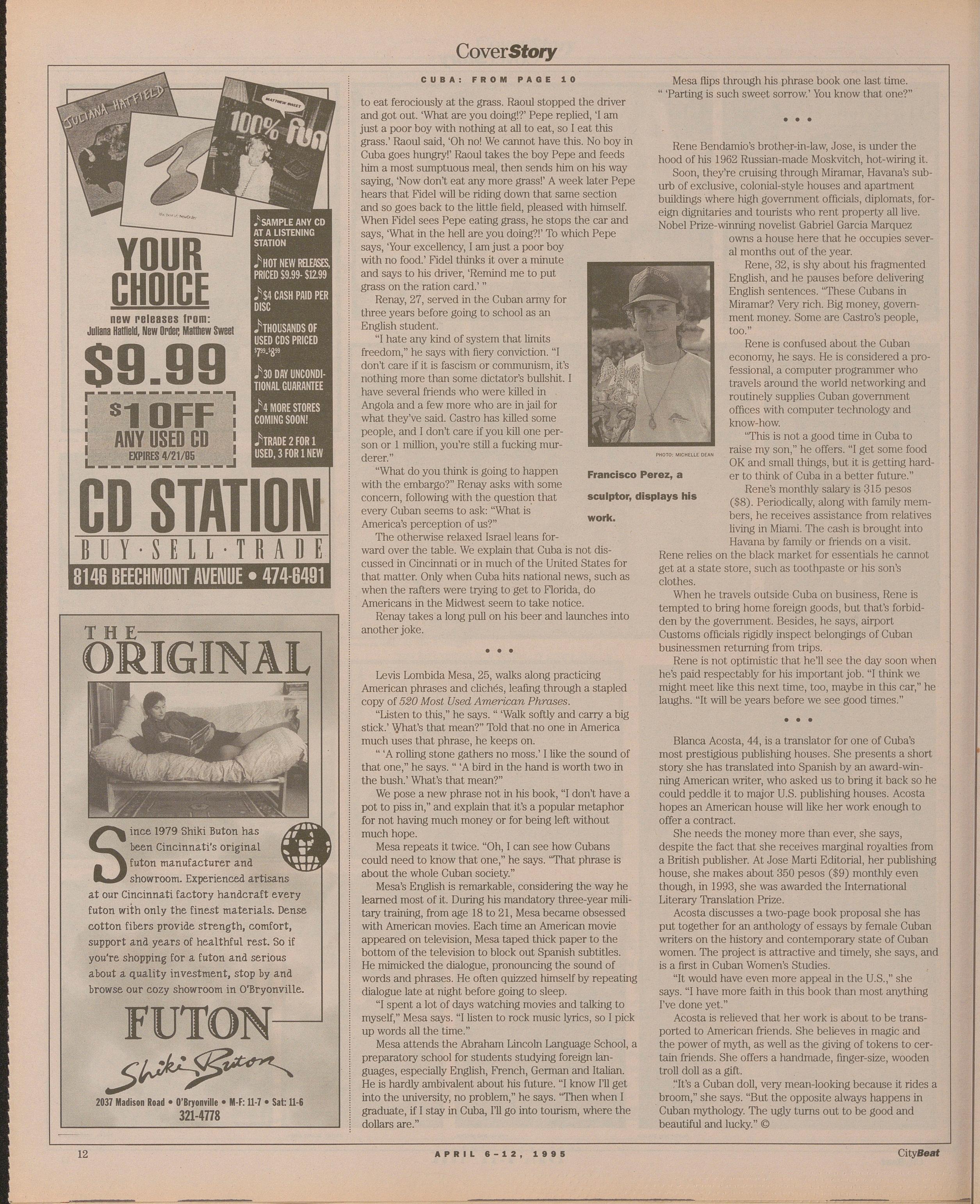 Department. And so nine Cincinnati phers left March 16 for six days stranded in the Miami airport. T-shirt is writer Jeffrey Hillard, above, flanked by Levis Lombida Mesa, left, and Ivan Fraga.)