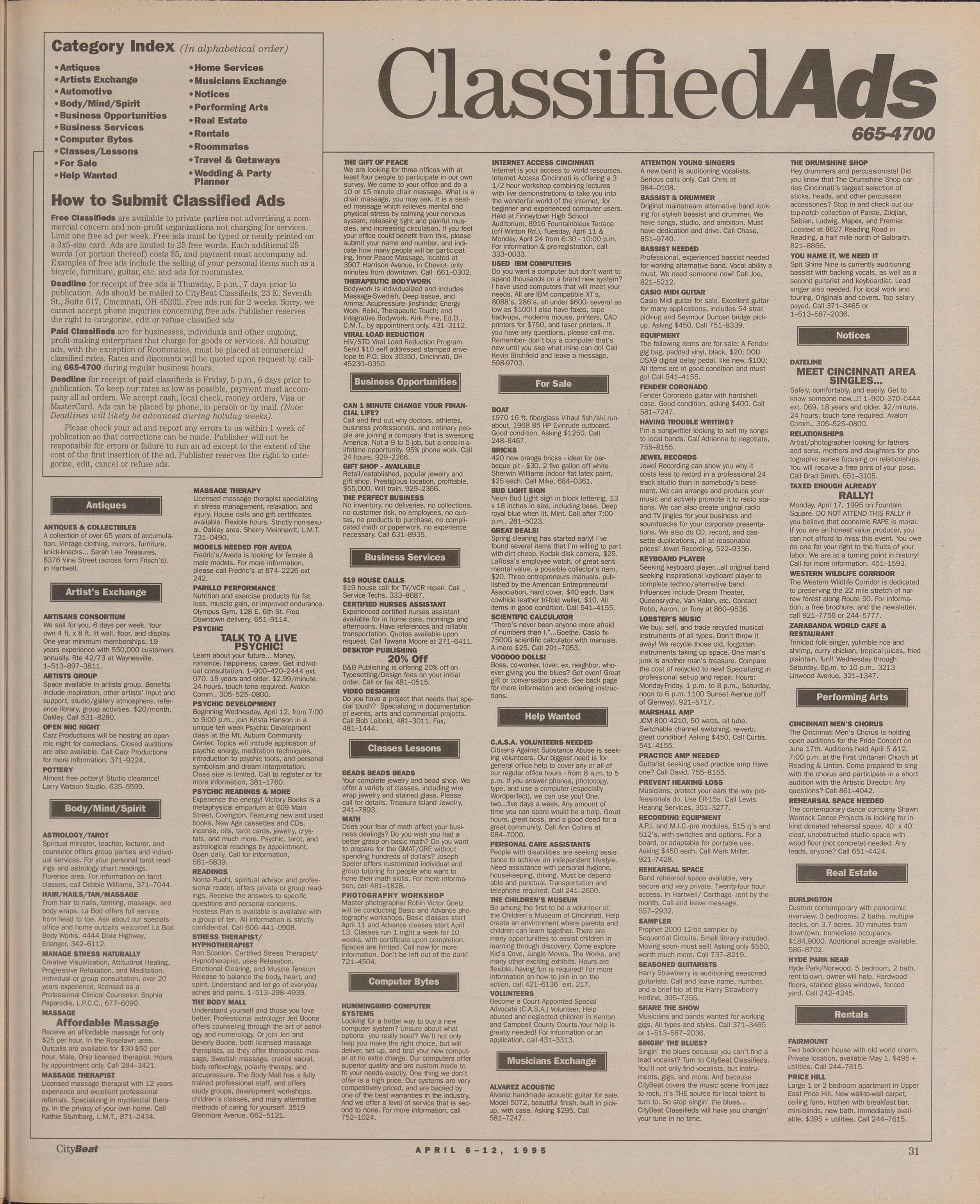 Classified Ads Help wanted, for sale, for rent, music, services 31