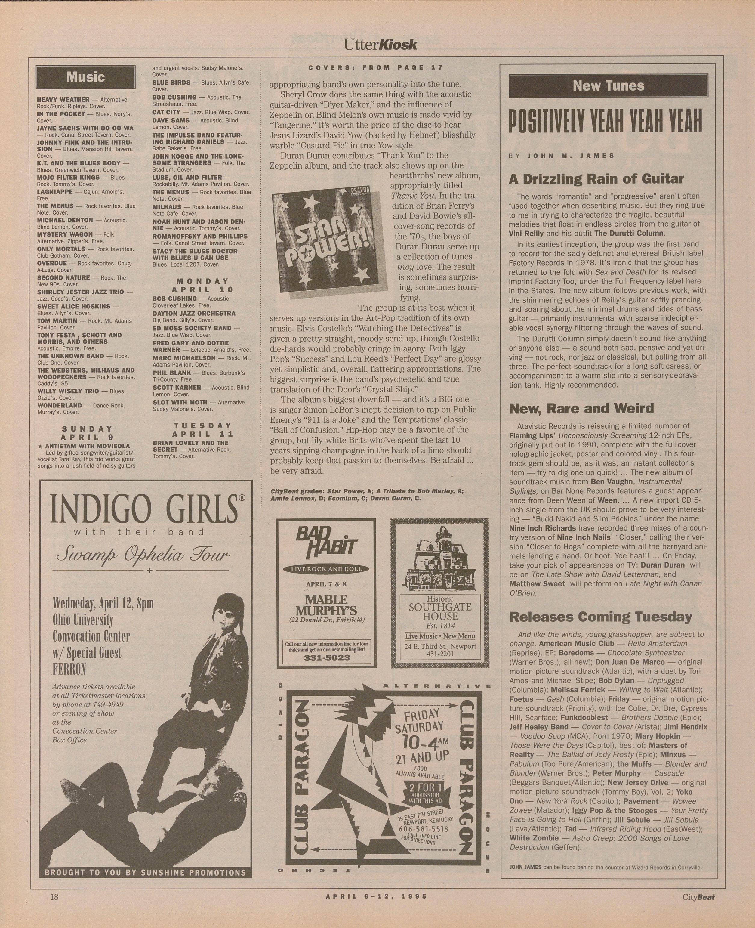 Music Check out Positively Yeah Yeah Yeah and Spill It 18,19
