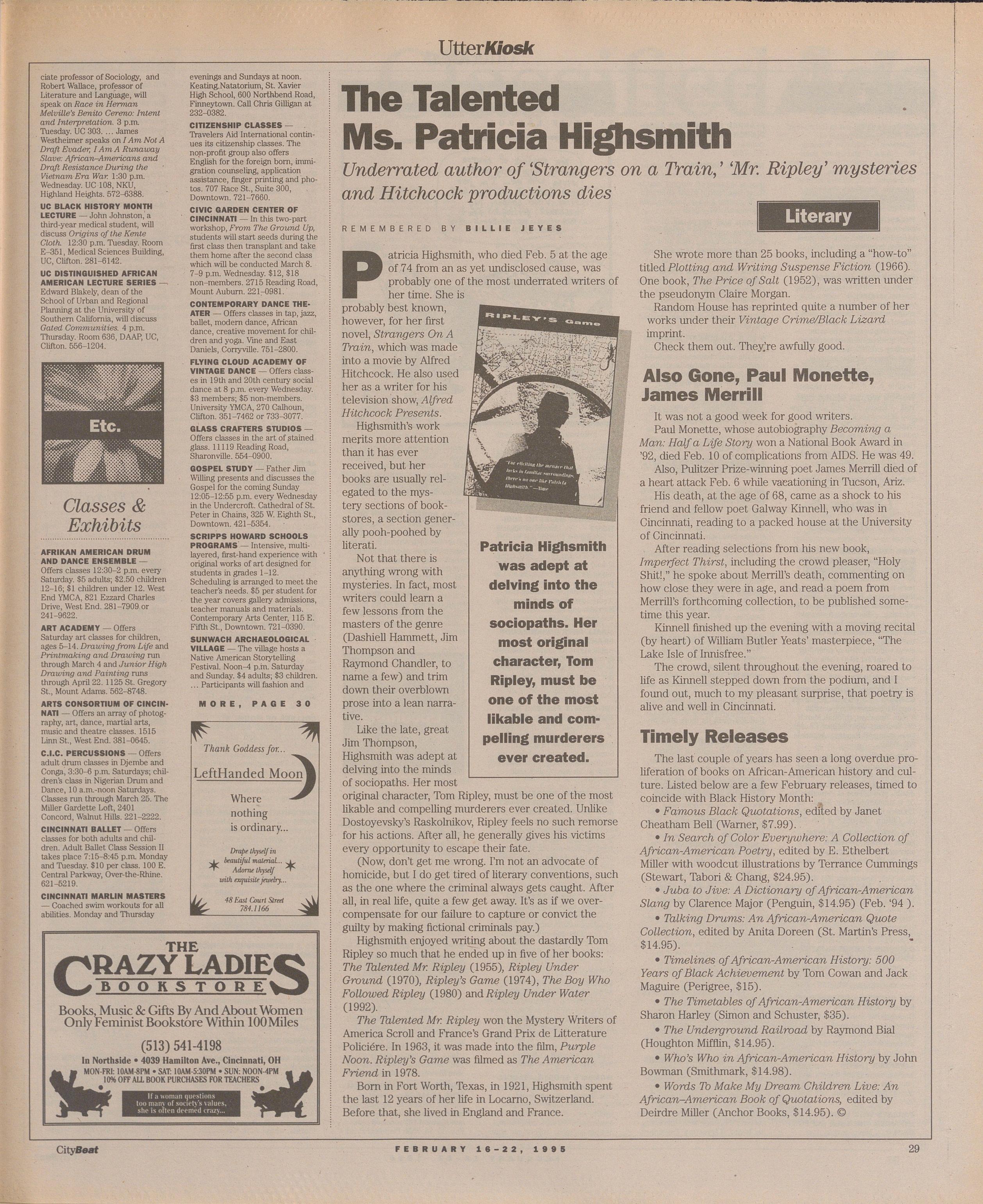 Enjoyed Billie Jeyes’ article, “Exorcising Demons” (Dec. 814, 1994). 1 remember reading David Morrell’s First Blood in its first paperback publication and thinking what a great novel, one of those that you pass along to friends enthusiastically.