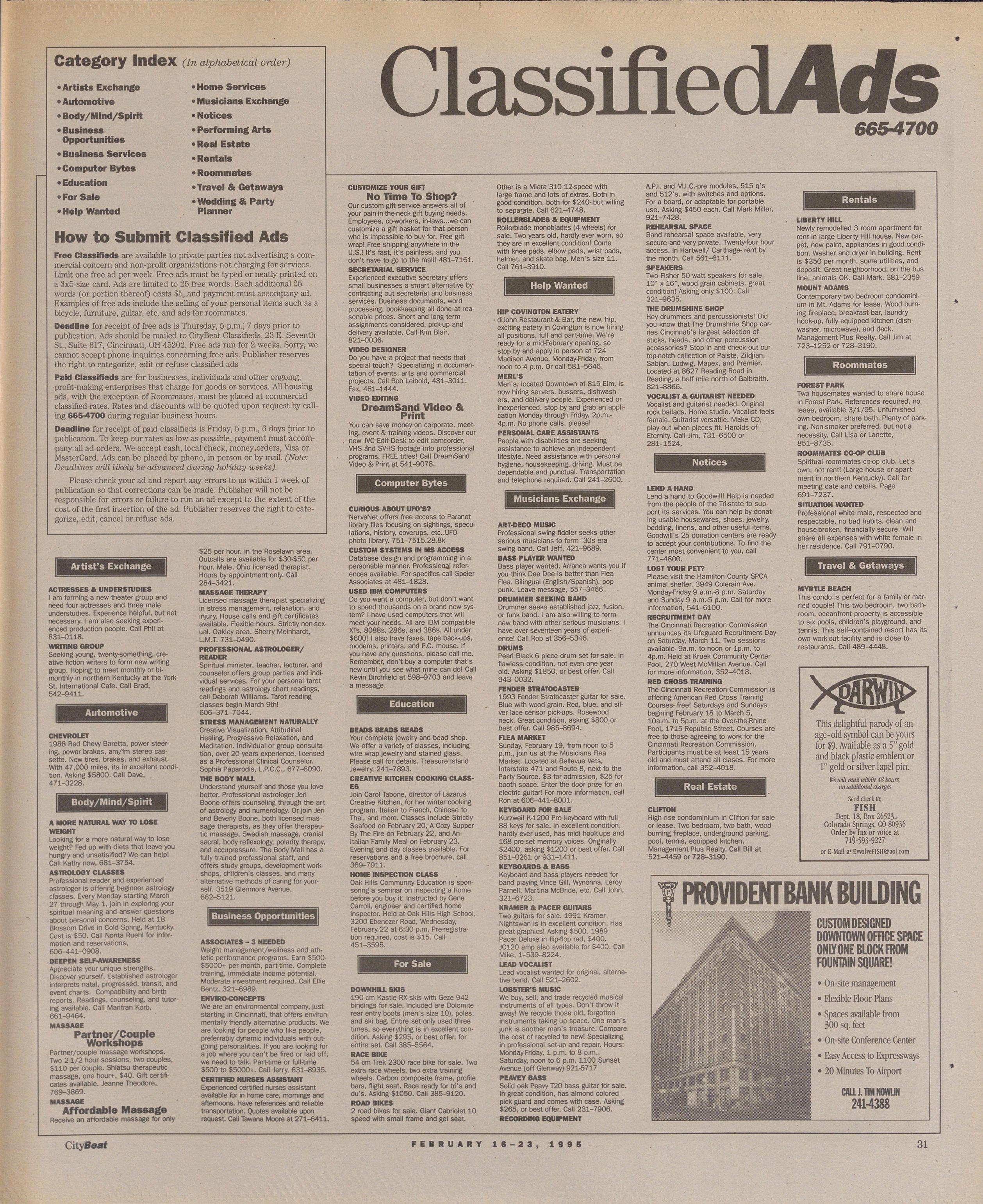 Welcome to Back Beat, the back page of Cincinnati CityBeat. This last page is your last chance to have the last word.