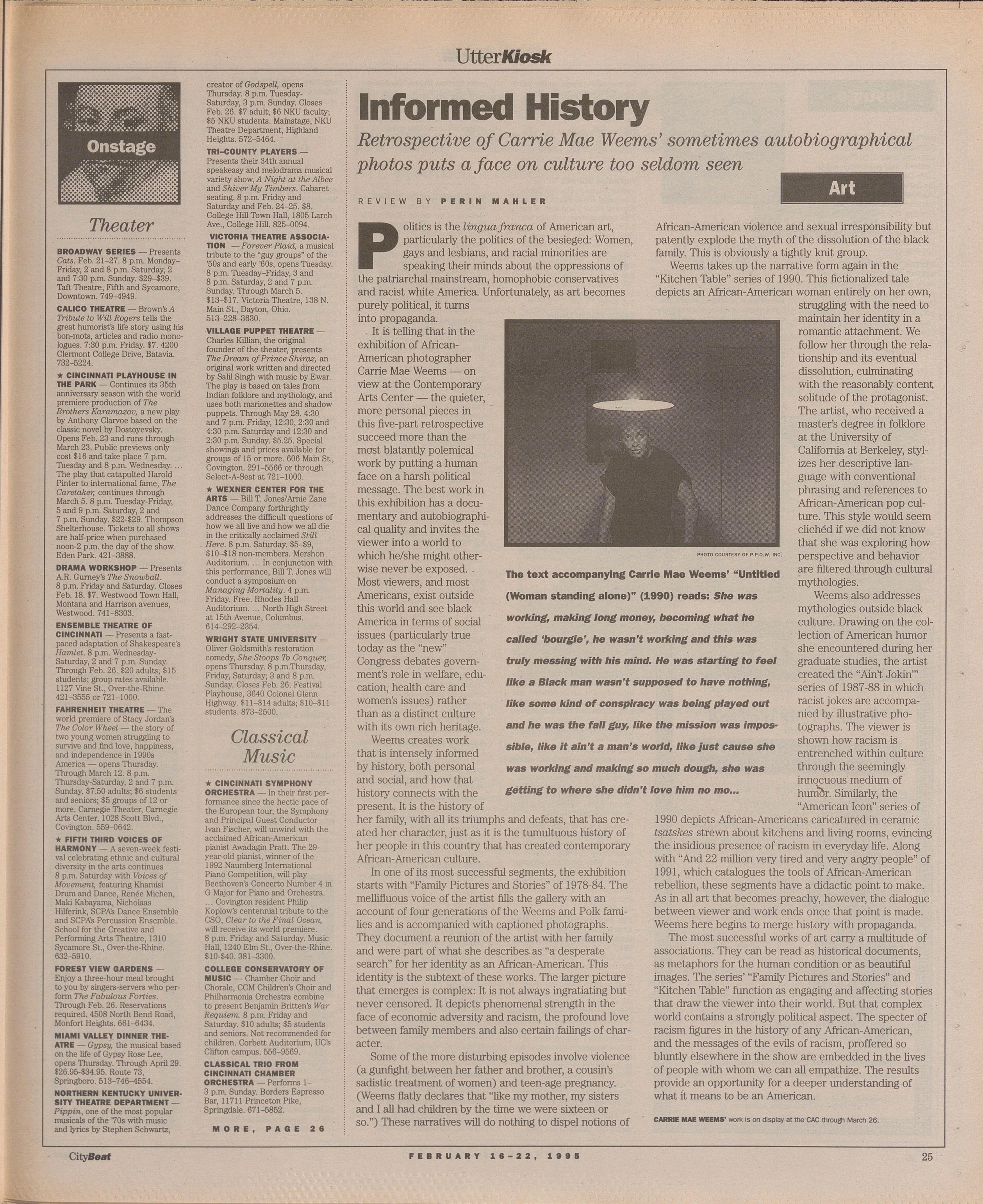 Art The CAC’s Carrie Mae Weems exhibit both reaffirms and questions African-American identity 25