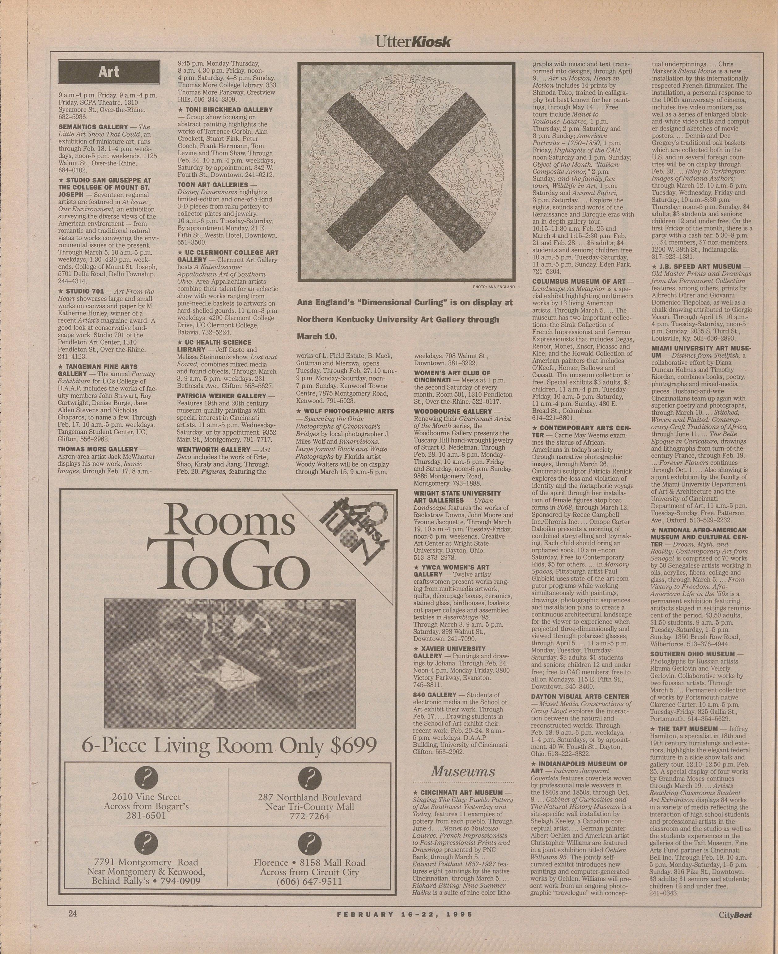 Tuesday- Saturday 11 A.M.-5 P.M. 1315 Main St, Over-the- Rhine 241-6672