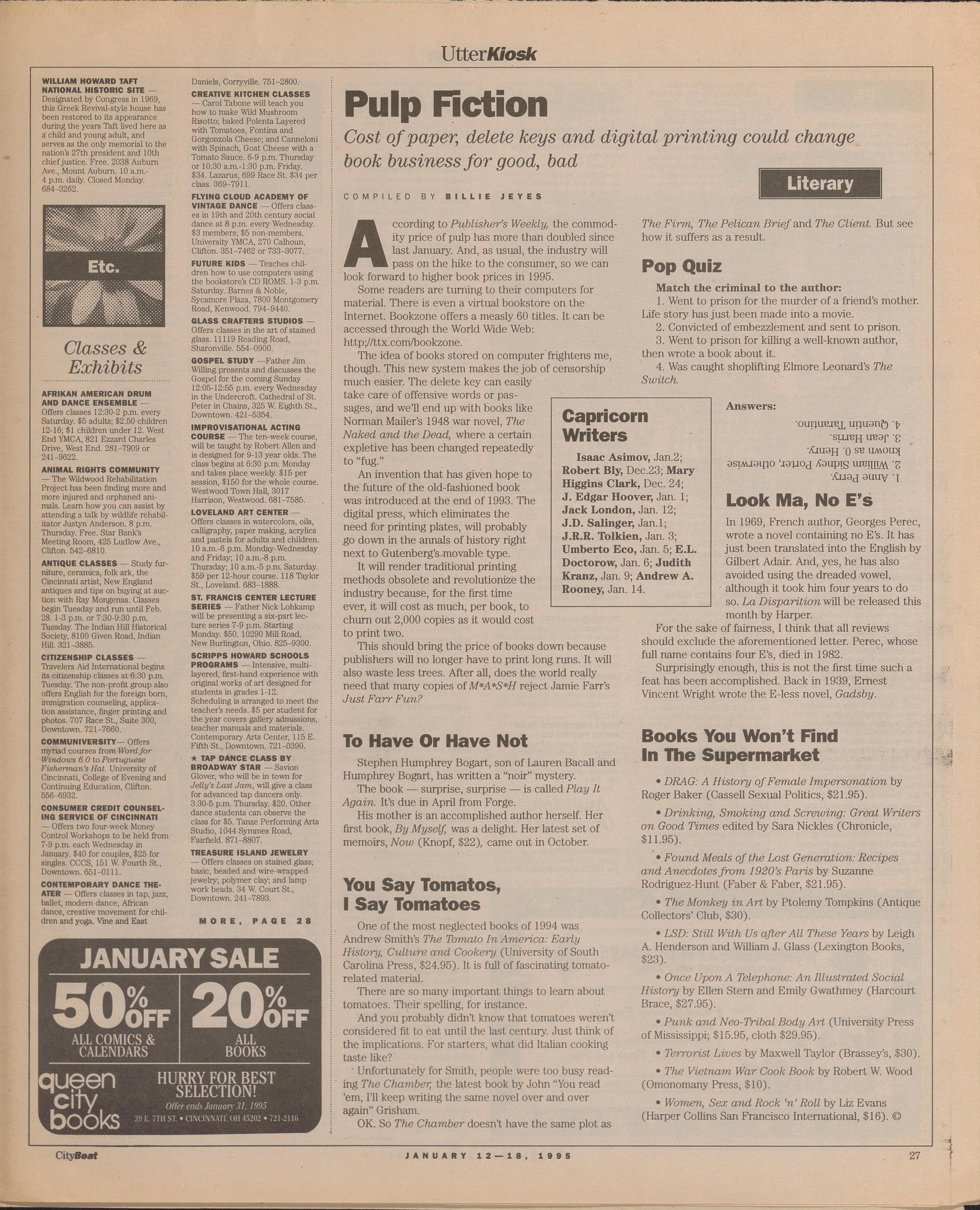 50% OFF ALL COMICS & CALENDARS Ends Jan. 31 QUEEN CITY BOOKS 39 E. 7th Downtown, 721-2116