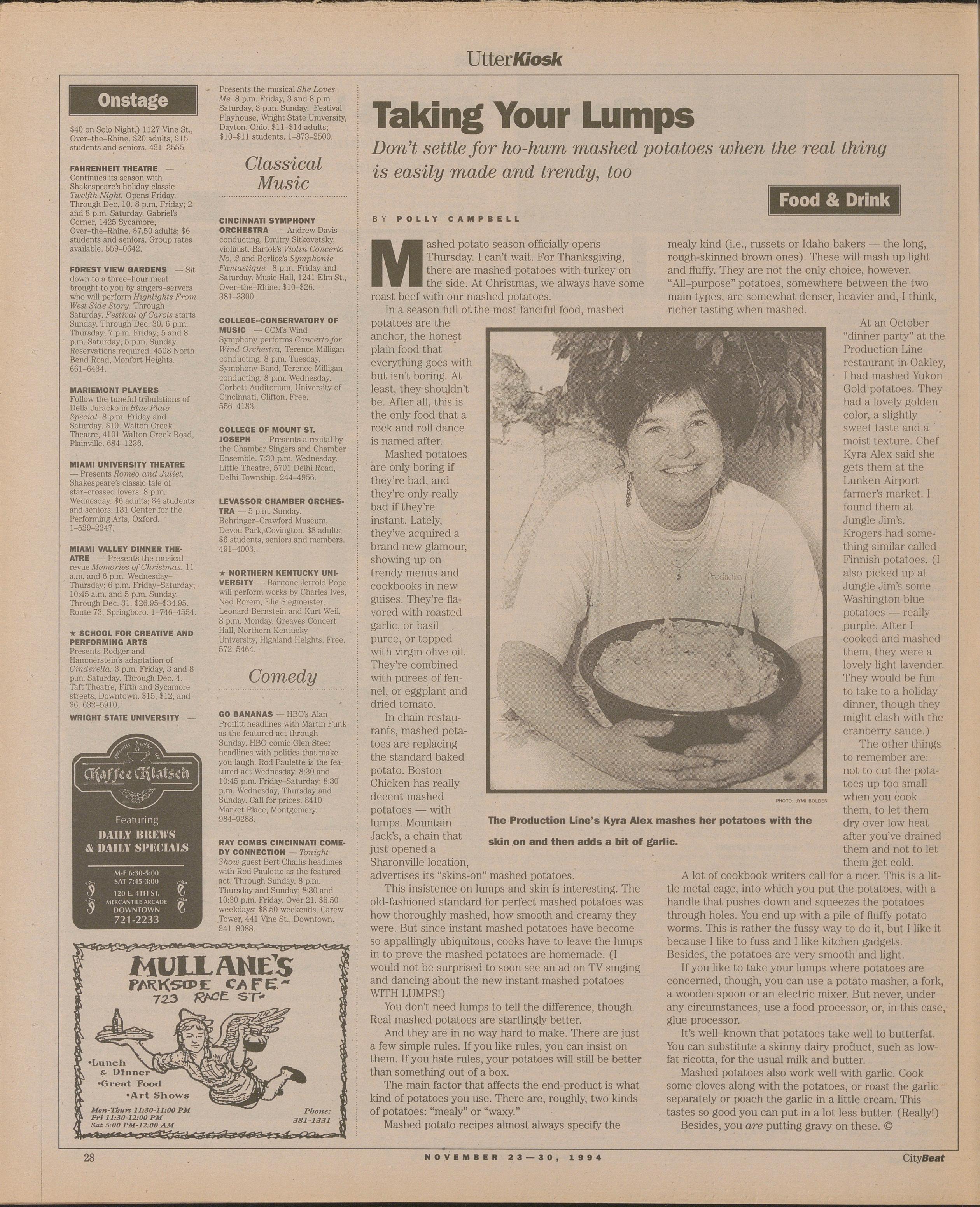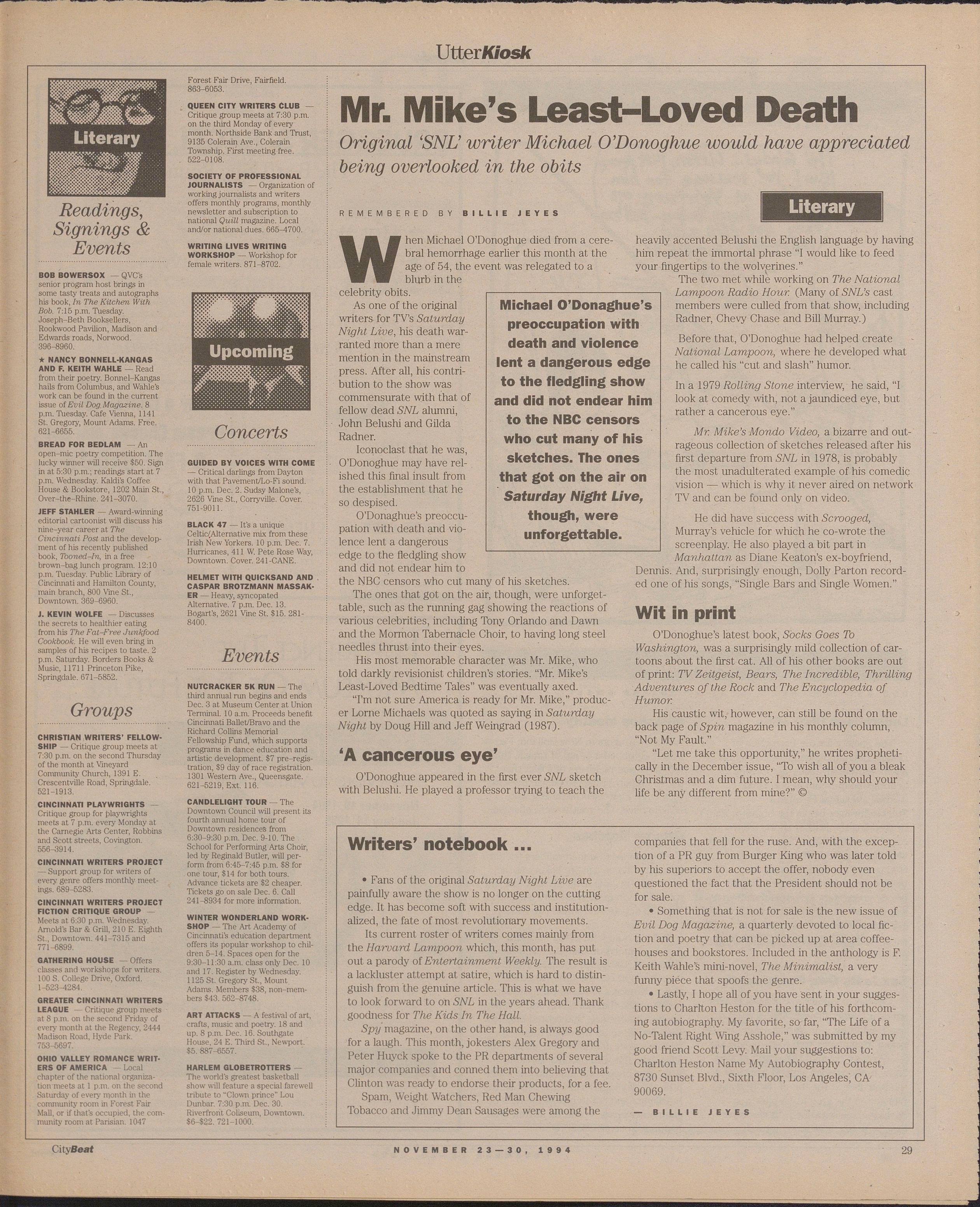 Pity! All the stuff you had was either done before (Over-the-Rhine, Politicians Crying) or available in every other local periodical in the city (Health, Reviews, etc.).