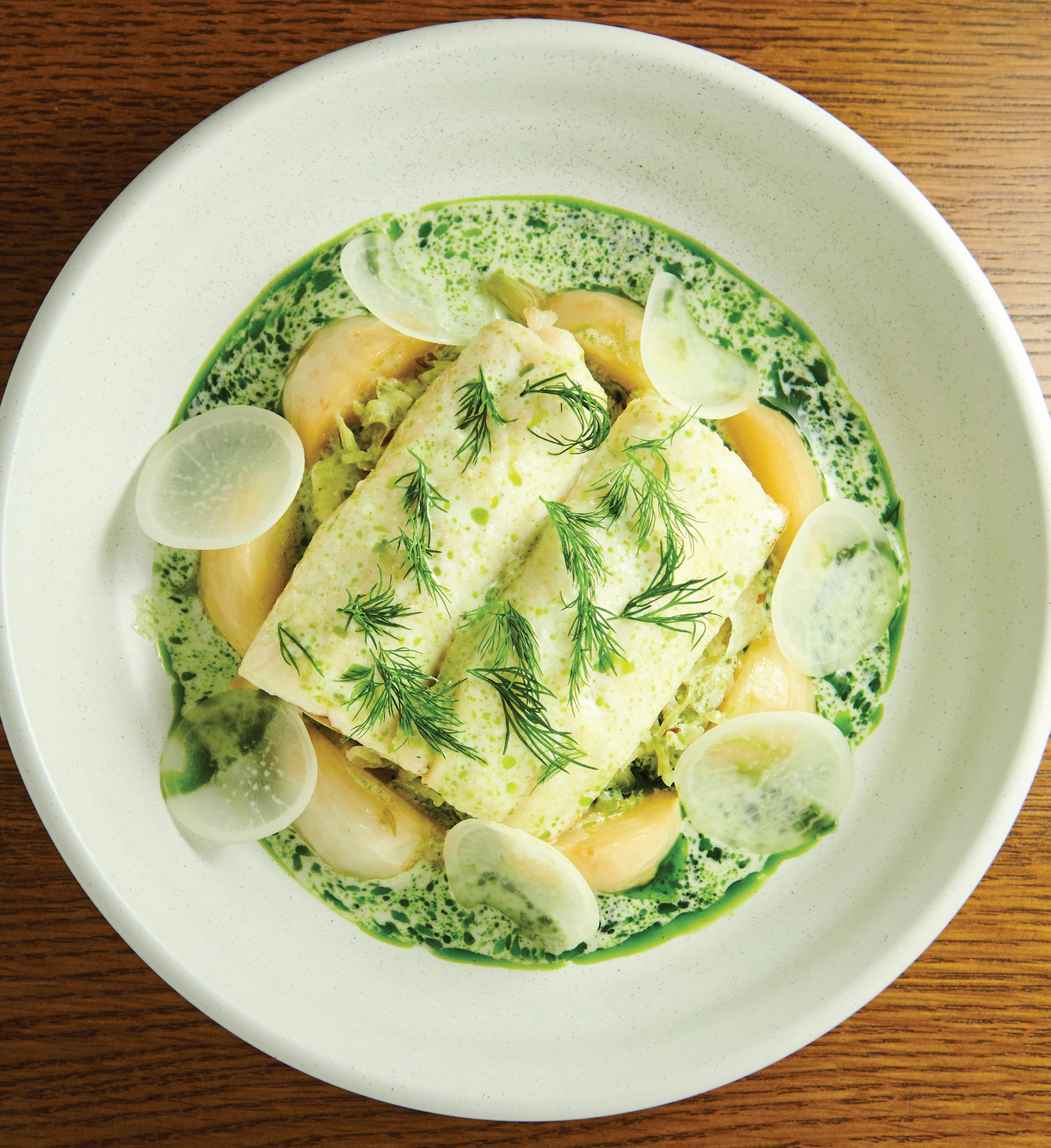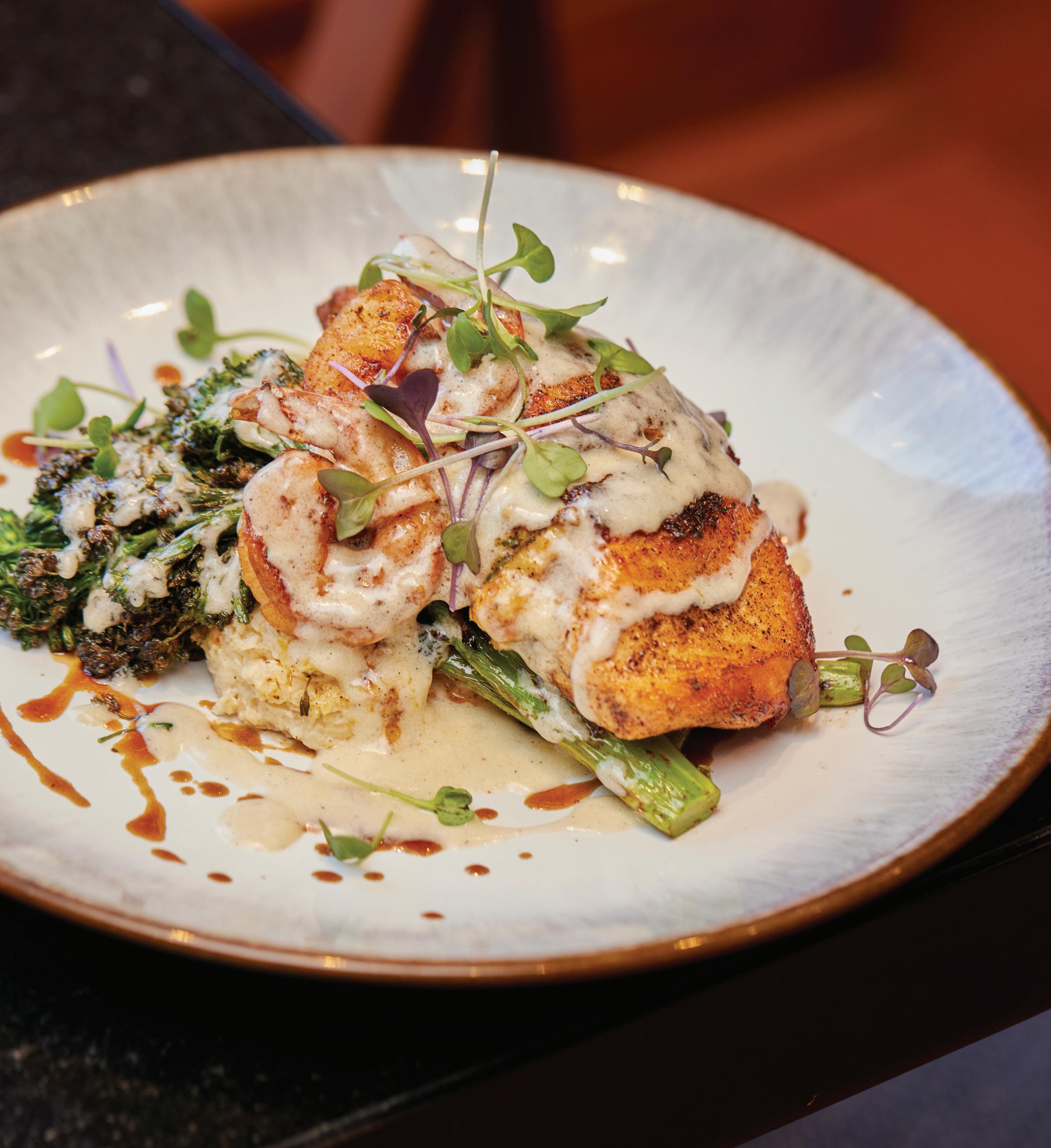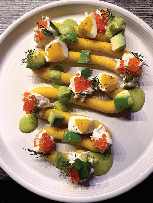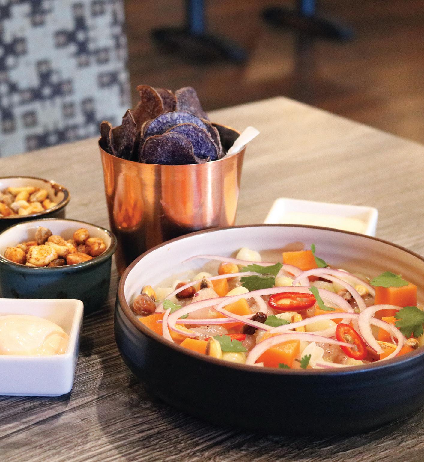 When chef Andrew Cisneros set out to open his first restaurant, Jalea, he clearly had a vision because the space, wine list and food are laser focused and thoughtfully executed. Start with the purple potato chips with decadent onion crema or the plantain chips with a zesty aji amarillo-cilantro salsa. Crunchy and salty, they’re both great companions to the curated wine list featuring picks from Spain, Portugal and Argentina as well as New Zealand and Napa Valley. The daily catch ceviche with citruscured grouper, sweet potato, Peruvian corn, slivered red onion and sliced Fresno chile was a delight with plantain chips. The rich and colorful crab causa was artfully presented as a snaky ribbon of pureed potato topped with dollops of sweet crab salad with smoked roe, salsa verde, chunks of avocado and hard-boiled egg. Don’t miss dessert, especially the plantain crepes with banana dulce de leche.