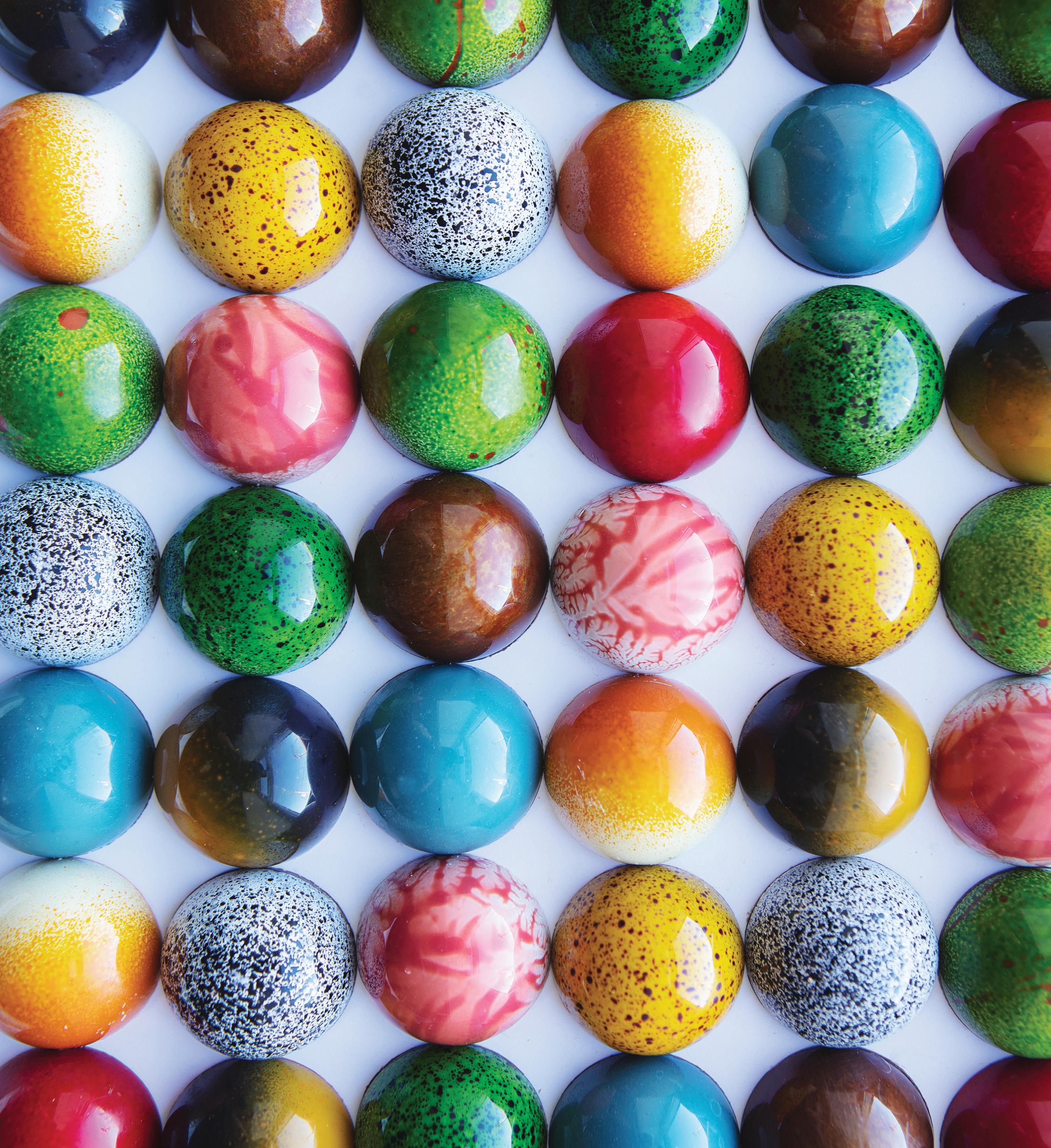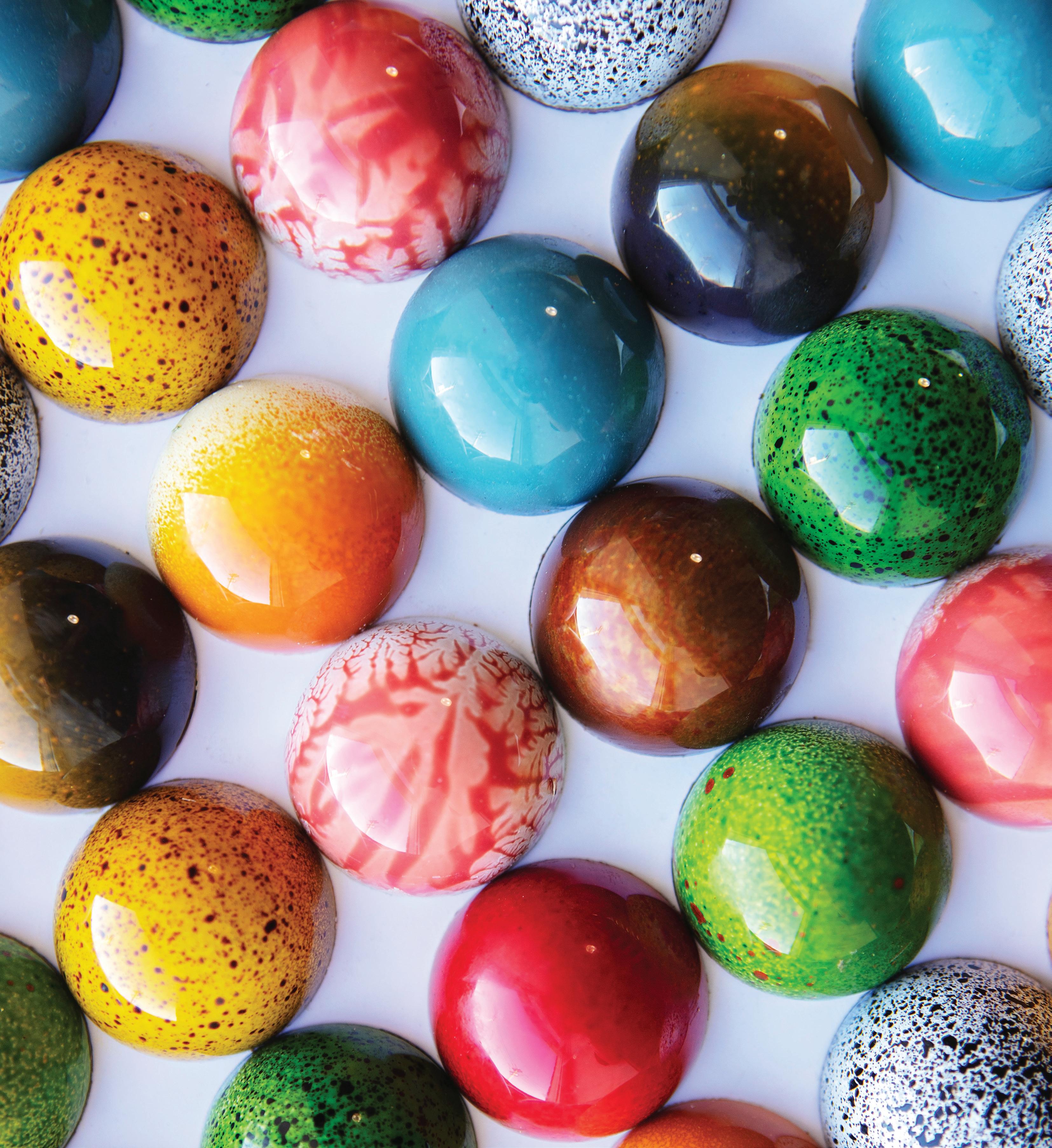 “What I find really interesting about chocolate is every single one is either hand-sprayed or -painted, so not a single one is really the same. It’s almost like drawing; I love drawing, I love colored pencils. I love painting.”