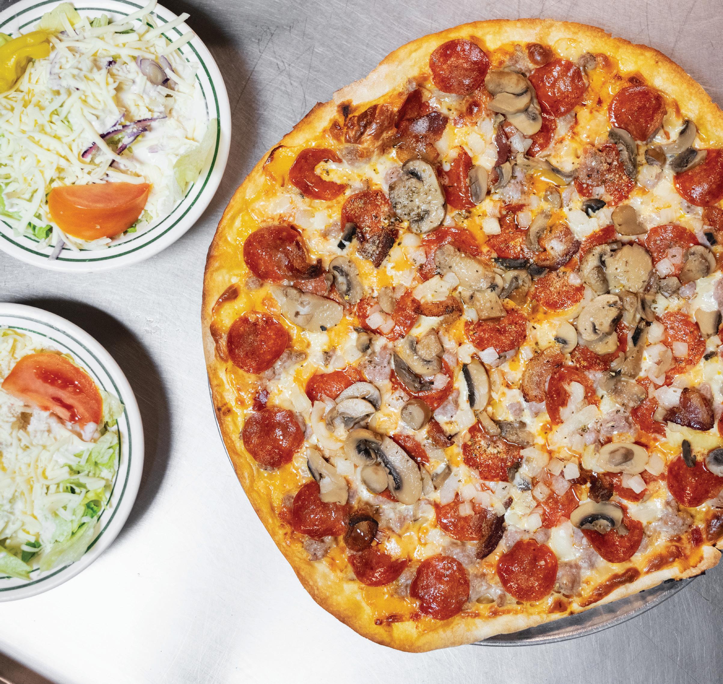 “We make our own pizza dough, we make our own sauce, we grind and season our own meat,” said Lia Serra-Randazzo, whose parents, Onofrio and Lucrezia Serra, started the business in 1970. “It’s about consistency – we keep everything the same. We give an abundance for the amount too. We give a nice amount of food.” Over the years, the menu’s gotten larger, ’za options have come and go, but, by and large, it’s business as usual. The supreme pizza – a formidable, meaty option with sausage, pepperoni, bacon, onion and mushroom – reigns, while the more pared down sausage and bacon pie is nearly as popular.