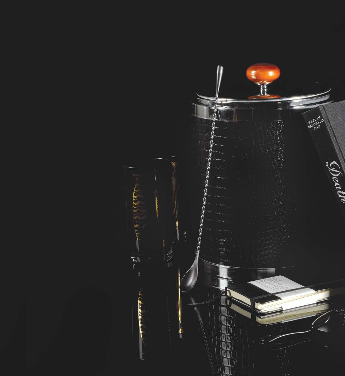 Black is timeless, and so is the best barware. Explore the shelves of your favorite antique shop or look for curated finds like these midcentury Fred Press highball glasses and Kromex faux alligator ice bucket at Intoxicology in The Grove.