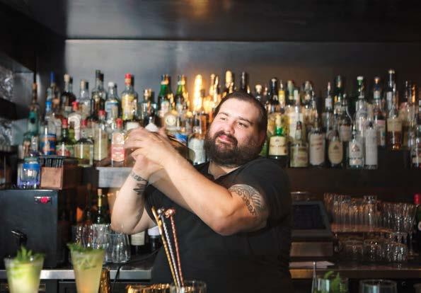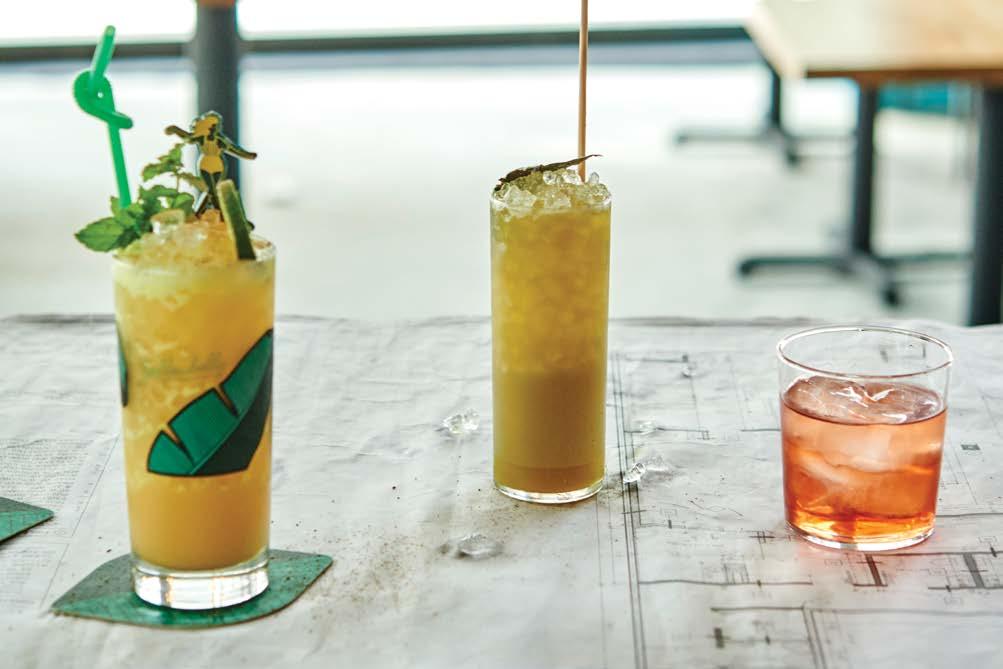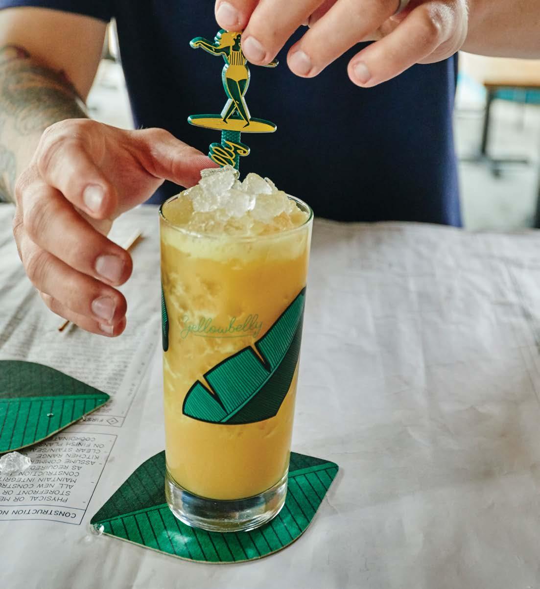vermouth and peach to show the bitter side of tiki. “It reads a lot more like a Negroni than you’d think,” Wiggins said. And the earthy, spiced Yellowbelly cocktail does its namesake proud with aged rum, ginger falernum, coconut, pineapple, turmeric and lime. “The earthy spice of the turmeric cuts through the sweetness,” Wiggins said. “To my mind, it’s like a really fancy piña colada,” Wiggins said.