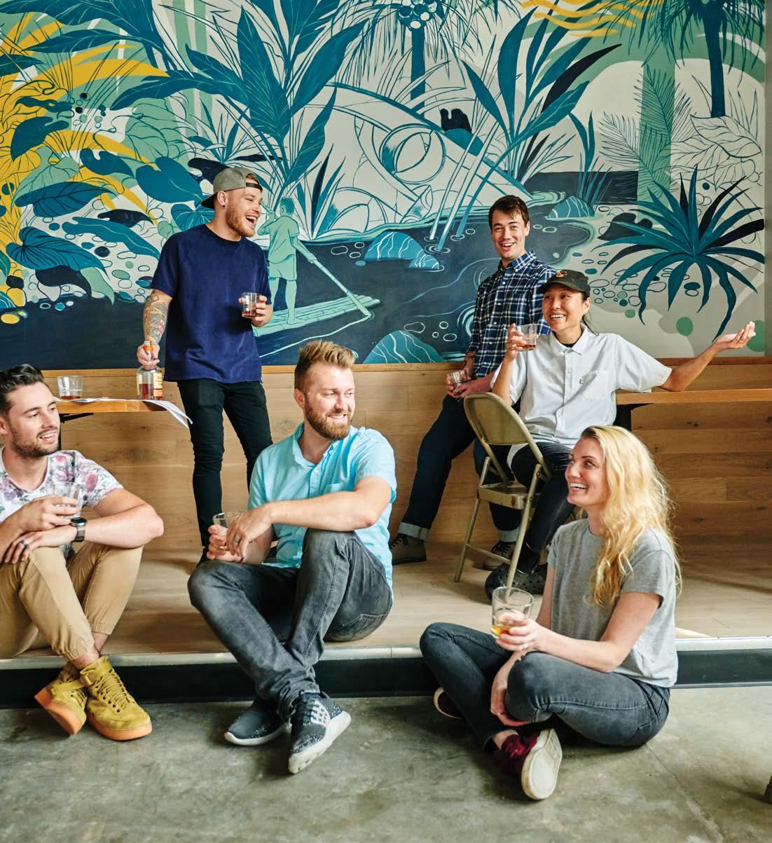 clockwise from bottom center, yellowbelly co-owner travis howard, lead bartender zach stout, co-owner tim wiggins, bartender taylor james, line cook hana chung and retreat assistant general manager kelly stout