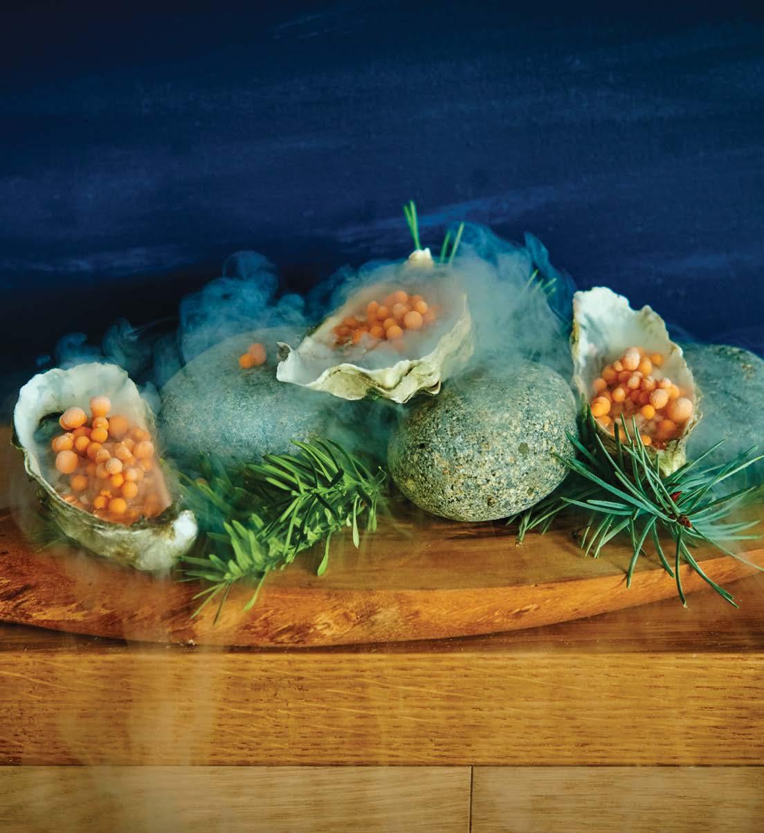 “There will definitely be some molecular gastronomy in a casual, playful way,” co-owner Tim Wiggins said. “You can’t not with Richard Blais involved.” Made with liquid nitrogen, kimchi pearls add a unique spin to Yellowbelly’s oysters.