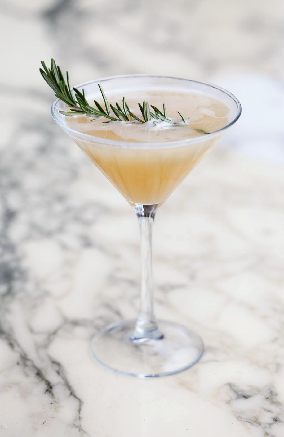 • Shake and strain into a martini glass and garnish with a fresh rosemary sprig.