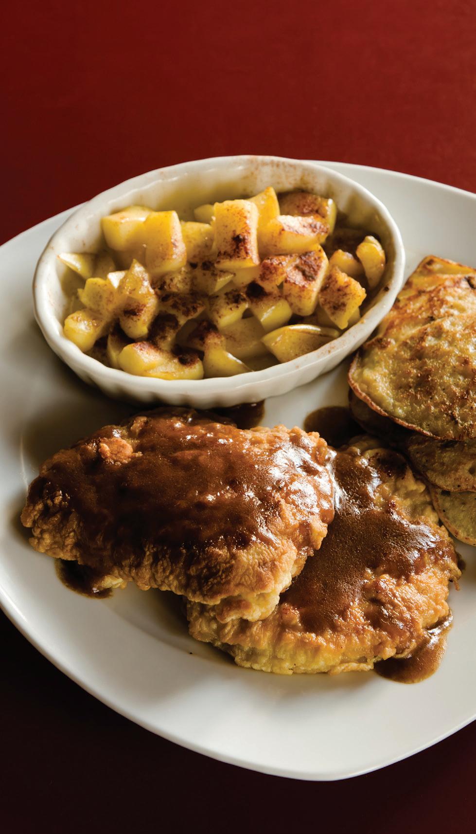 BLT pizza; Jagerschnitzel (chicken schnitzel with bacon, mushrooms and wine sauce); and cranberry-apple crisp with candied bacon crumbles. Finally, the Garlic – All My Favorites class will showcase baked crab with garlic sauce, 40-clove chicken, spicy garlic potato salad, garlic fries and doublechocolate-fudge raspberry pizza (which does not include garlic – we hope).