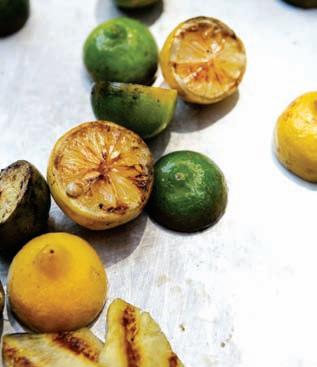 Wanna try this at home? It’s easy. Whether using limes, lemons or chunky pineapple slices, simply cut the fruit in half, place the cut side on a grill and let it cook for about 3 minutes, being careful not to burn the fruit. Once you run the grilled fruit through a juicer or reamer, the juice will keep in the fridge for 2 days. For the tastiest results, brush the grill grates with a little vegetable oil before you get started to keep the fruit from sticking. You also want to rub olive oil on the skin side of the fruit – a trick that “pulls up the flame and pulls up the smoke [into the fruit],” explained Salt bar manager and co-owner Matt Obermark. “They get really sweet and smoky. Everyone is into smoke these days.” – Ligaya Figueras