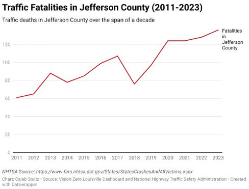“A person’s chance of survival is directly correlated with a vehicle’s weight and speed at time of impact,” Vision Zero Louisville stated in its 2023 Annual Report.