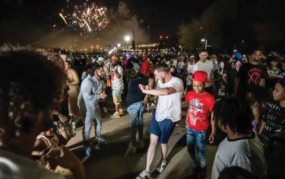 consider their transportation options. Because downtown parking is limited and crowds can reach 600,000, organizers advise carpooling, biking, or taking public transportation to avoid traffic congestion after the event.