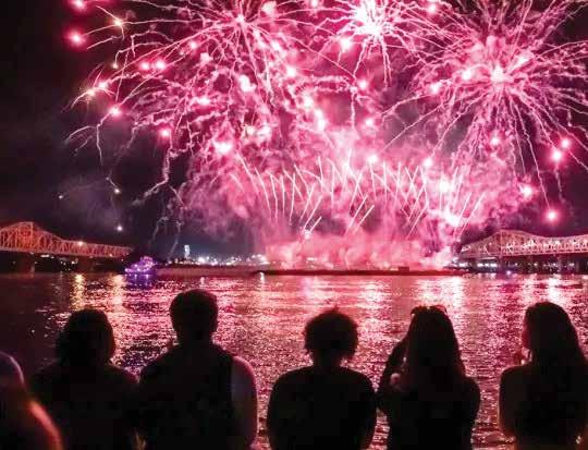 In addition to riverfront sites in Southern Indiana like Jeffersonville Riverstage Park and the Ohio River Greenway, popular viewing spots include the Big Four Lawn, the Meijer Family Fun Zone, and Waterfront Park’s North Great Lawn.