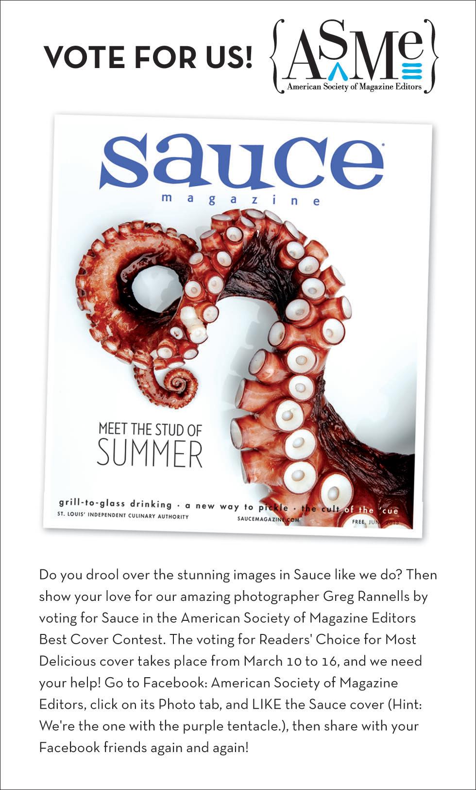To place advertisements in Sauce magazine contact the advertising department at 314.772.8004 or sales@ saucemagazine.com.
