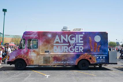 What to get It’s painted on the truck: Get the Angie Burger. This patty pops thanks to the addition of shredded cheddar, bacon, garlic and Budweiser in the ground beef. It comes topped with sweet caramelized onion, American and Provel cheese, brown sugar-maple glazed bacon, tomato and spinach, all held together in an onion bun.
