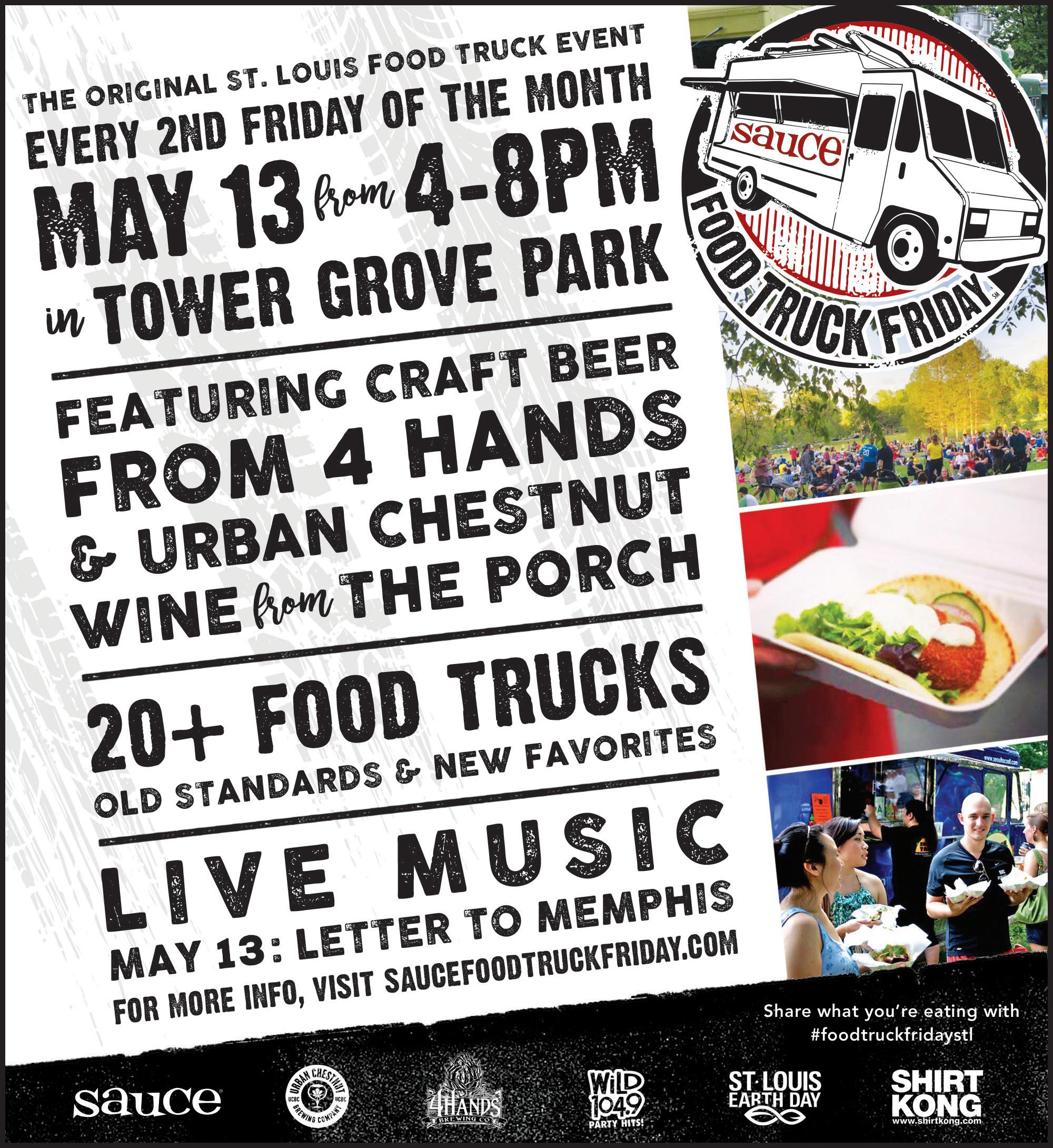 May 13 – 4 to 8 p.m., Tower Grove Park, 4256 Magnolia Ave., St. Louis, 314.772.8004, saucefoodtruckfriday.com