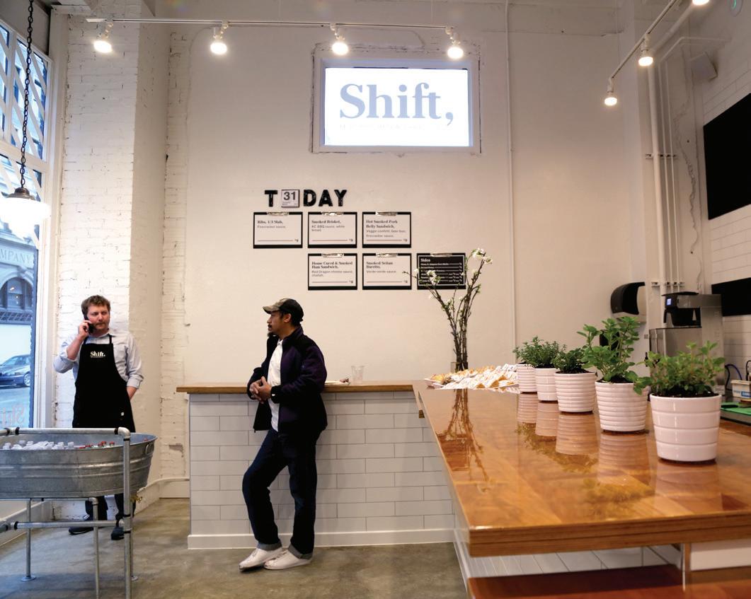 Forgetting your lunch doesn’t mean scrounging for day-old doughnuts in the conference room. Drop that stale tiger tail and head to Shift, Test Kitchen and Take Out, the latest concept from restaurateur Dave Bailey. This carryout-only eatery serves as a test kitchen for forthcoming Bailey concepts. Barbecue is the fare of the moment. While the menu changes daily, keep an eye out for the tender, smoked brisket served with a sweet Kansas City-style sauce and a side of creamy mac and cheese with a kick of jalapeno. The chopped pork belly sandwich is a fatty, smoky indulgence that comes with spicy firecracker sauce with cherry notes and crunchy purple cabbage slaw. Grab a cup of ice cream on your way out (look for the blueberry pie), write your name on the lid, and hide it in the freezer for an afternoon snack.