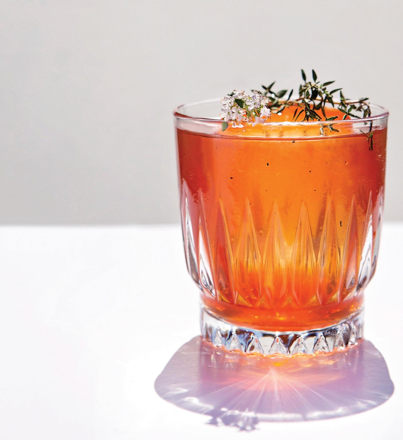 • Briefly hold 1 or 2 thyme sprigs over a flame until they start to smoke, then place in an ice-filled mixing pitcher. Add the rye, simple syrup and bitters. Express the lemon twist into the pitcher, then toss it in. Stir until diluted and chilled, about 30 seconds, then strain into an ice-filled rocks glass.