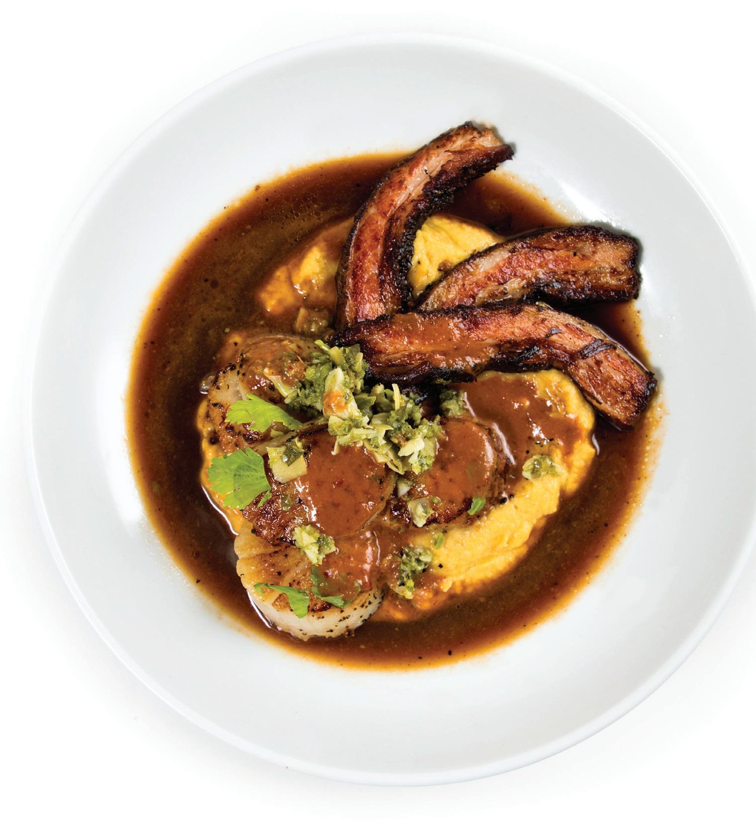 Goat is out and chicken is in at Patois Eatery & Social Lounge, the new restaurant and nightlife venue in the former Rustic Goat space. Start your meal with sweet, sticky corncakes slathered in rich honey butter, but resist the urge to order another round. You’ll need room for the jerk chicken, a tried-and-true recipe from Chicago-based Uncle Joe’s Jerk. Half a chicken is grilled until the skin is crisp and charred, then chopped into four pieces and served with a pungent jerk sauce packing allspice and a touch of sweet heat. Dig into the side of rice and peas, close your eyes and dream of Caribbean waters.