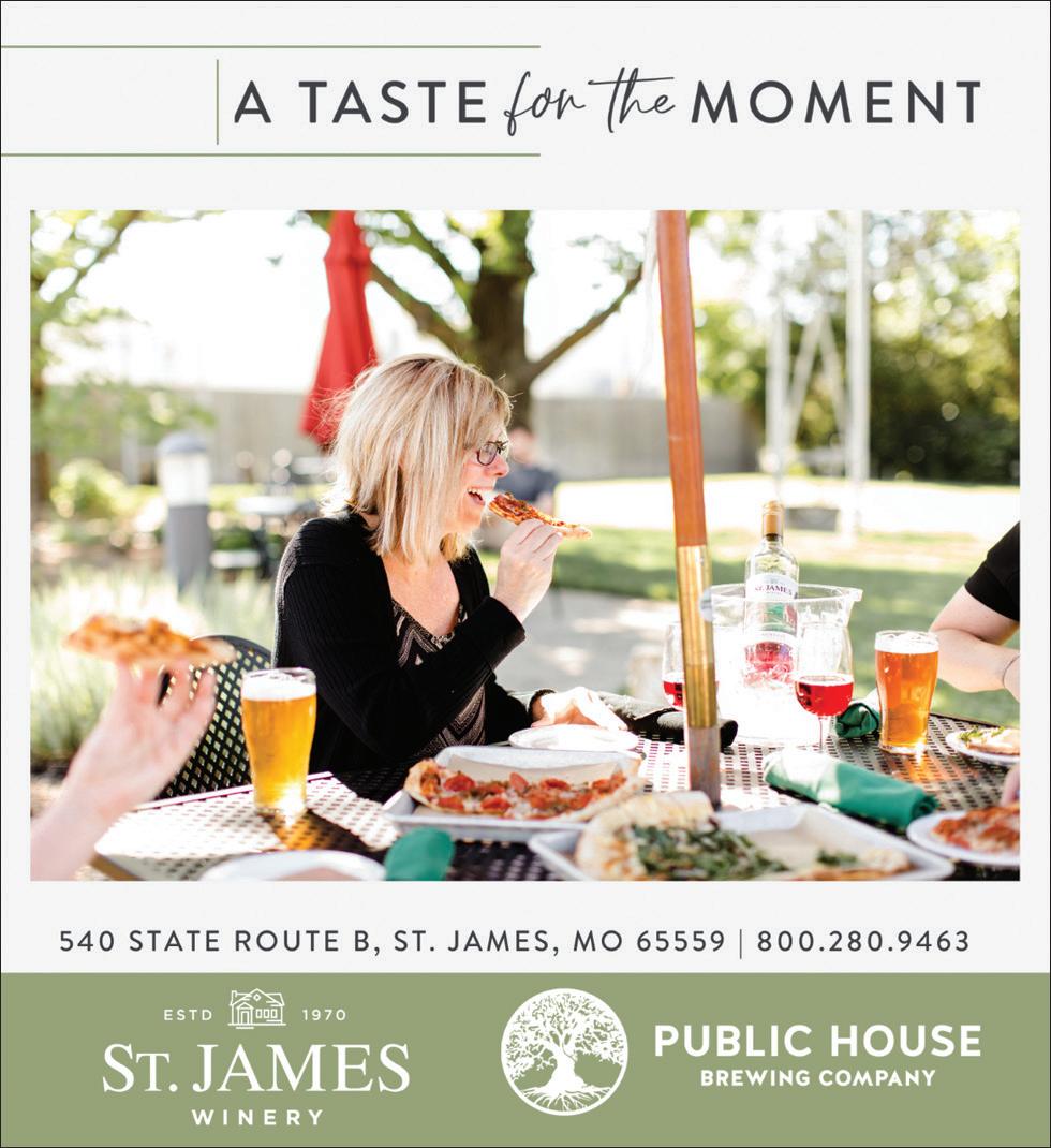 St. James Winery was established in 1970 in the heart of the Missouri Highlands. Since then, the winery has grown to be Missouri's largest and most awarded winery, with nearly 185 acres of grape production. Visitors enjoy wine tastings, wine by the glass, and wine slushies made from the expansive wine list. The winery offers the opportunity to spend your afternoon in The Gardens at St. James, a beautifully landscaped outdoor space that is shared between the Public House Brewing Co. and the winery. The Gardens is the perfect place to gather and relax, and enjoy the locally inspired Public House menu with the best