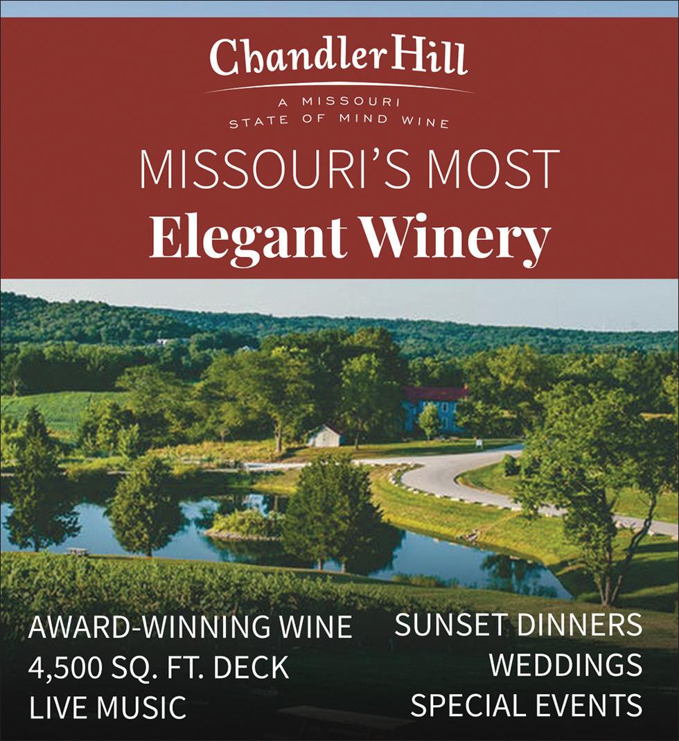 Chandler Hill is a Midwest winery like no other. From the tasting room to the 5,000-square-foot deck overlooking vineyards, a spring-fed lake, rolling hills and the inspiring Osage Valley teeming with wildlife, Chandler Hill is an enchanting year-round destination. Enjoy meals on-site, wine tastings, special festivities and events, as well as weekly live music and dinner service every Wednesday evening. (There’s a full kitchen, so no outside food and beverages.) Chandler Hill is an ideal spot to host a private party, from weddings to birthdays, accommodating groups from 10 to 300. The family-friendly establishment, open six days a week and closed on Mondays, also allows dogs outside on the deck and in the vineyards. 596 Defiance Road, Defiance, 636.798.2675, chandlerhillvineyards.com