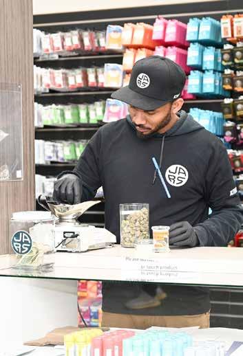 motorcycle on display. Its budtenders are friendly and knowledgeable and its selection is high-quality.
