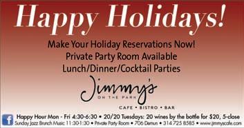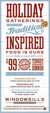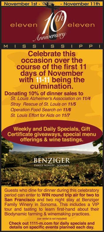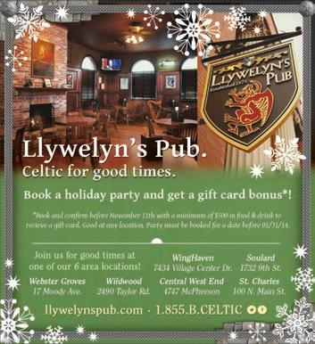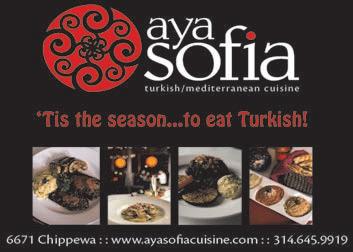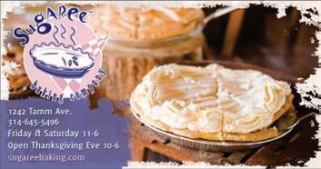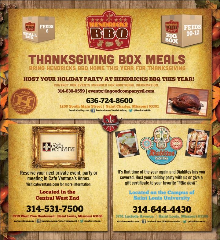 The flavors of the holiday don’t end there. Save room for a hot-from-the-oven pumpkin pie and marscarpone cheese calzone sprinkled with cinnamon and sugar. Now you can take your post-Turkey Day nap. S AUCE ON THE S IDE, 903 P INE S T., S T. LOUIS , 314.241.5667, EATCAL zONES COM