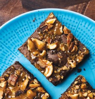• Place the brownies back in the oven and bake another 5 to 7 minutes, until the brittle is slightly melted into the brownie.