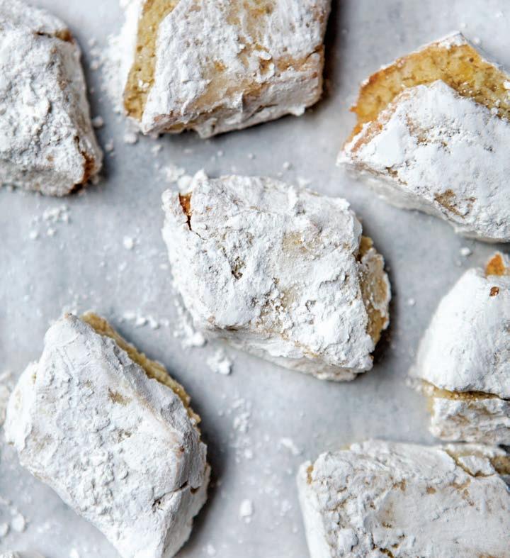 • Toss each cookie in powdered sugar and place on another cookie sheet lined with parchment paper.