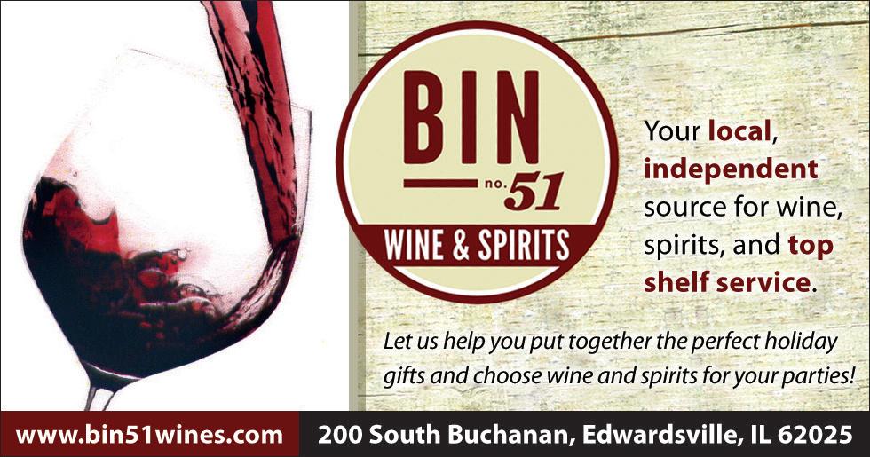Nov. 14 – 6 to 8:30 p.m., Louis & Clark Community College, N. O. Nelson Campus, 600 Troy Road, Edwardsville, 618.307.5909, bin51wines.com