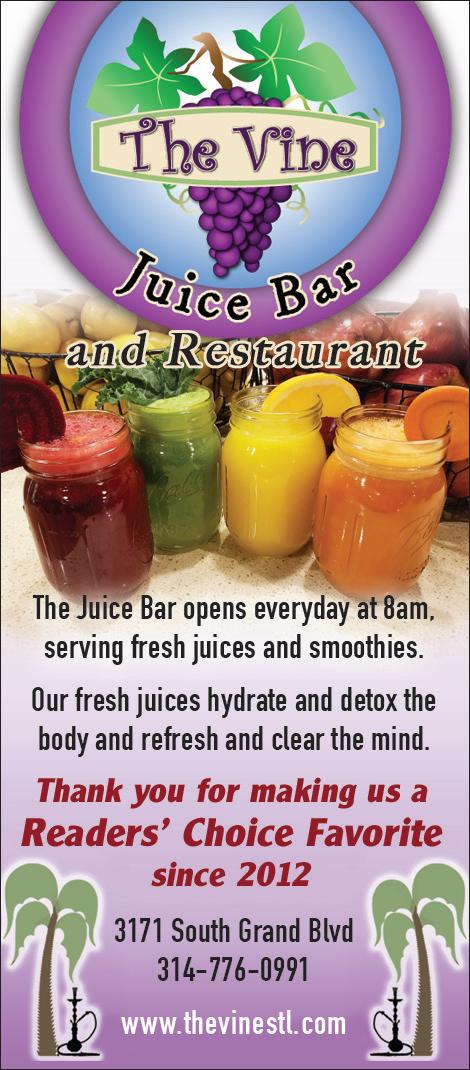 Even the most ardent meat-eater can find something to love at this year’s Favorite Vegetarian/Vegan spot. Lulu’s on South Grand Boulevard serves imaginative, healthy eats in a minimal space accented by reclaimed wood, natural light and a community vibe. Pull up a seat on the dogfriendly patio and enjoy addictive Buffalo cauliflower bites, banh mi tacos and other fun dishes less than $10, like the sushi bowl made with compressed watermelon “sashimi.” Bonus tip: Ride your bike there, and flash your helmet at the counter for a cool 15 percent off.