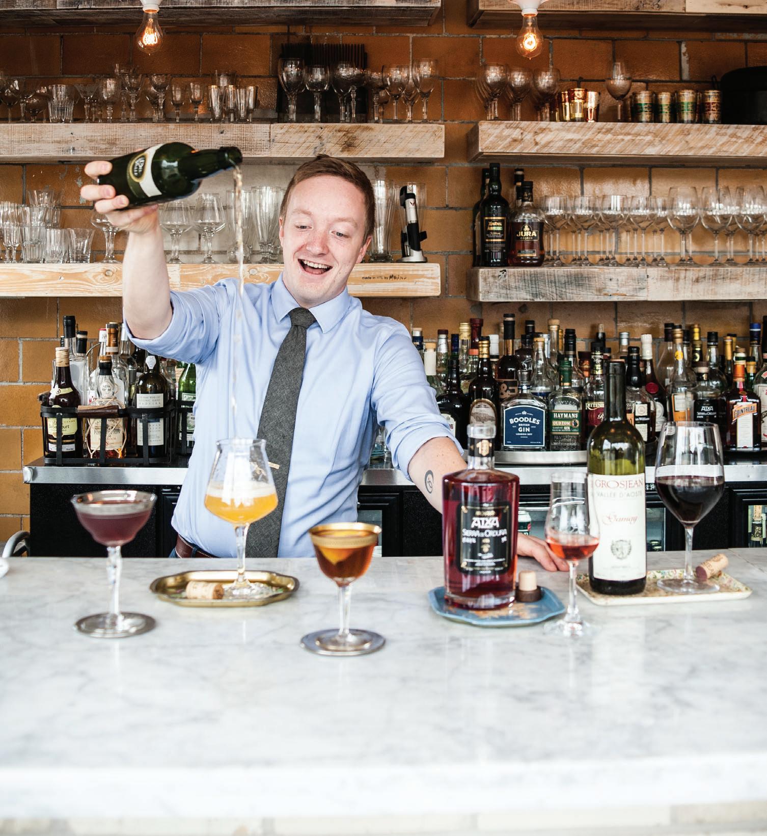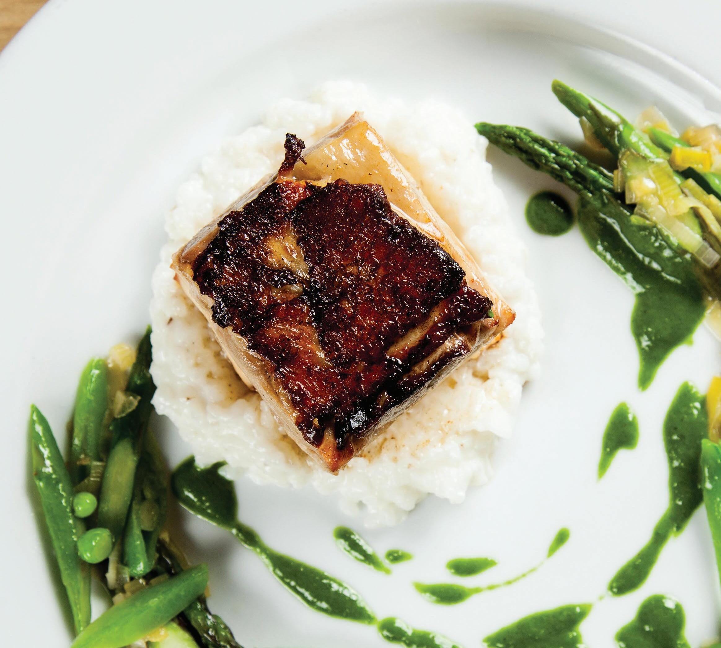 With each seasonal iteration of The Libertine’s trademark entree Three LiTTLe Birds, executive chef Josh Galliano and executive sous chef Josh Poletti exhibit the classic elegance of fowl, whimsically reinvented and roasted to perfection. Chicken, quail and Cornish hen are deboned, brined, stacked in layers and finally topped with morsels of dark meat. The succulent casserole is gently CVapped for several hours, which caramelizes the crispy skin before the Three Little Birds are laid to rest upon a bed of tangy, oldschool Carolina Gold rice middlins, cooked with milk and pecorino. The ensemble is finished with a saute of local, seasonal vegetables – this spring, it was scharf Farm’s asparagus and Andy Ayers’ snow peas doused in spring ramp butter sauce. The end product is a testament to Galliano’s and Poletti’s ability to elevate mere chicken and rice to first-rate distinction. – Anne Marie Lodholz