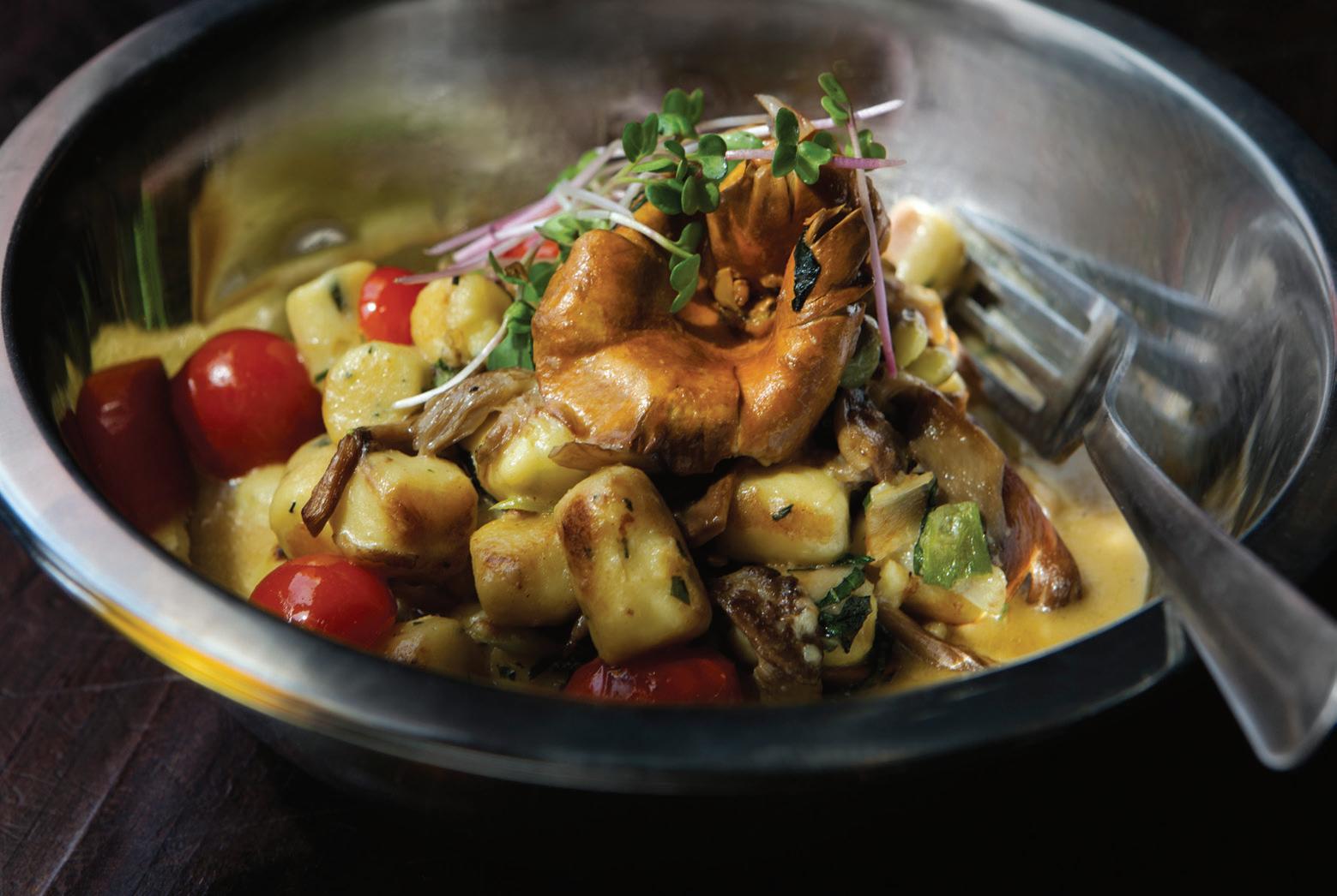 Be warned: the alluring, savory scent of URBAN CHESTNUT’S PARISIAN GNOCCHI may attract moochers. These delicate, pan-fried pillows melt in your mouth with Dijon mustard, fresh herbs and rich Comté Gruyere. Ours came swimming in a velvety dashi-butter broth with Missouri chanterelle and oyster mushrooms, crowder peas and bright cherry tomatoes. The beer may take us to Dusseldorf, but a bite of this golden gnocchi whisked us away to Paris.