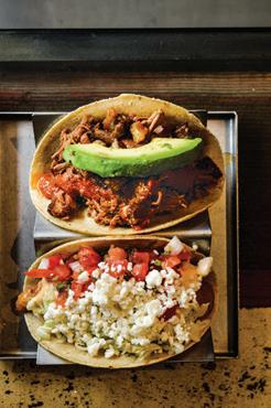 Starters are standouts at Twisted Tree. Try the onion rings, which have a crackling crust that clings to the onions with each bite. Crab rangoon seems out of place on a steakhouse menu, but was piping hot, oozing with cream cheese filling and served with two dipping sauces: apricot sweet-andsour and zingy mustard. Salads are served family-style with sides of crumbled feta, freshly fried croutons and a trio of dressings (the onion-y, slightly sweet house vinaigrette was the winner). Don’t miss the luscious, tender prime rib; get it with a side of mac and cheese, where al dente noodles are swathed in a sharp white cheddar sauce and topped with crispy breadcrumbs. Don’t skip the house-made desserts. A giant slice of almond-y white wedding cake slathered with white buttercream came with a scoop of vanilla ice cream. Get the cheesecake (which has a sugar cookie crust) with the fresh, bright strawberry sauce.
