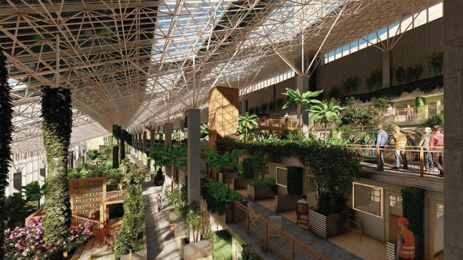 However, the project envisions a solar-powered year-round residence that’s three football fields long and collects its own water to cut usage by 90%. It features terraced gardens for growing food hydroponically and aeroponically (in mist) in a closed ecosystem with ponds where fish excrement becomes fertilizer.