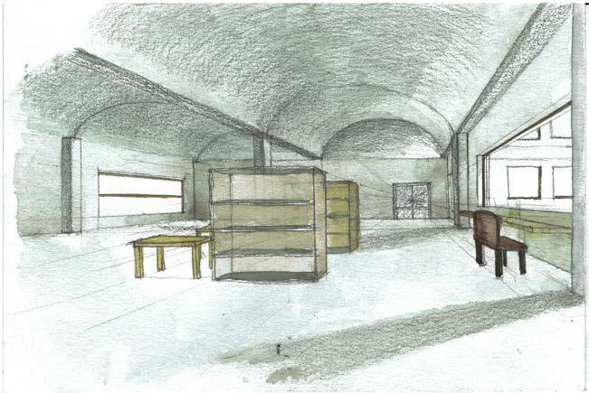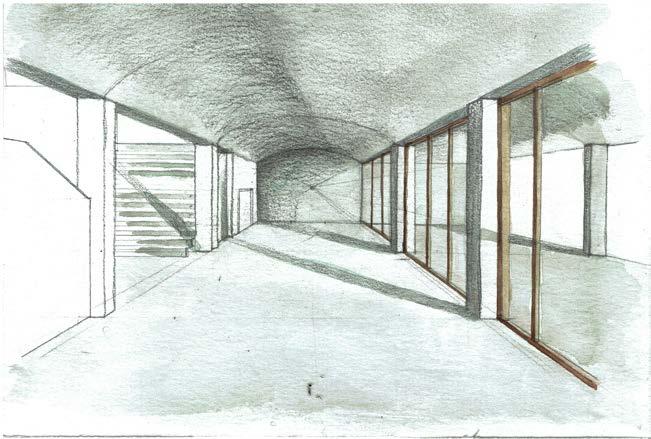 Dessin perspectif - vue depuis le halle d'accueil