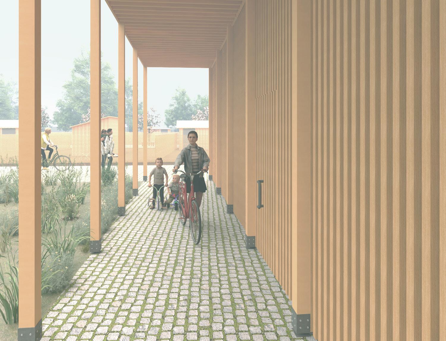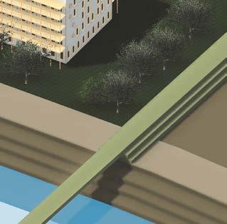 L’atelier lance le projet sur la Route de l’île des épis, près du pont de l’Europe. Avec des arbres classés et une vue vers le Rhin, la promenade le long du fleuve souligne l'importance des ressources naturelles. Le projet amène cette valeur dans son milieu avec les jardins potagers partagés et combine avec des activités communs au rezde-chaussée de logement pour découvrir la scène vers le Rhin au cours de leur trajet.