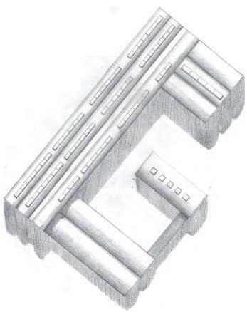 Le bâtiment a une trame structurelle composée de poteaux en béton et d'une couverture en briques. La structure et l'enveloppe sont 2 éléments dissociés. L'application d'un toit en voûte permet d'induire le parcours.
