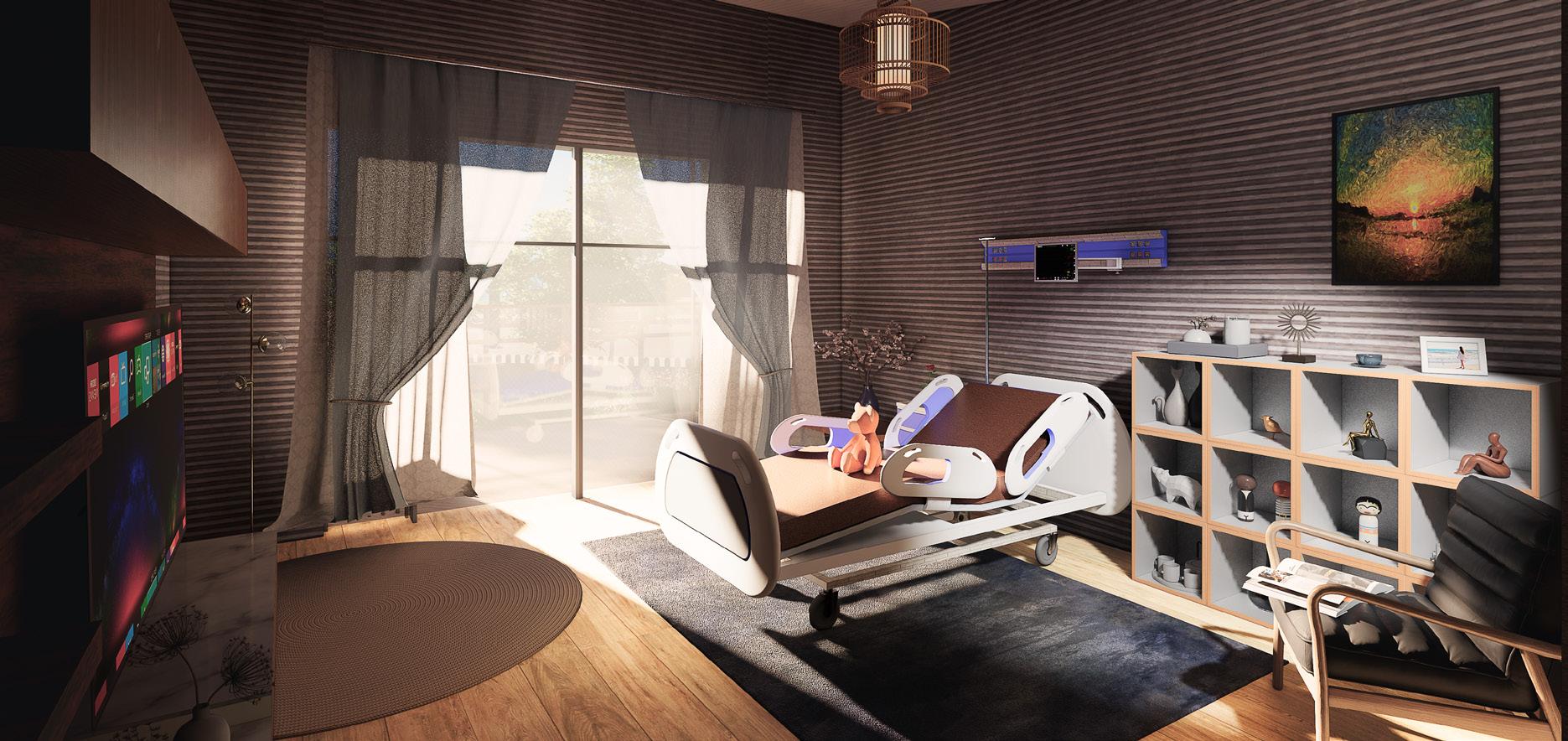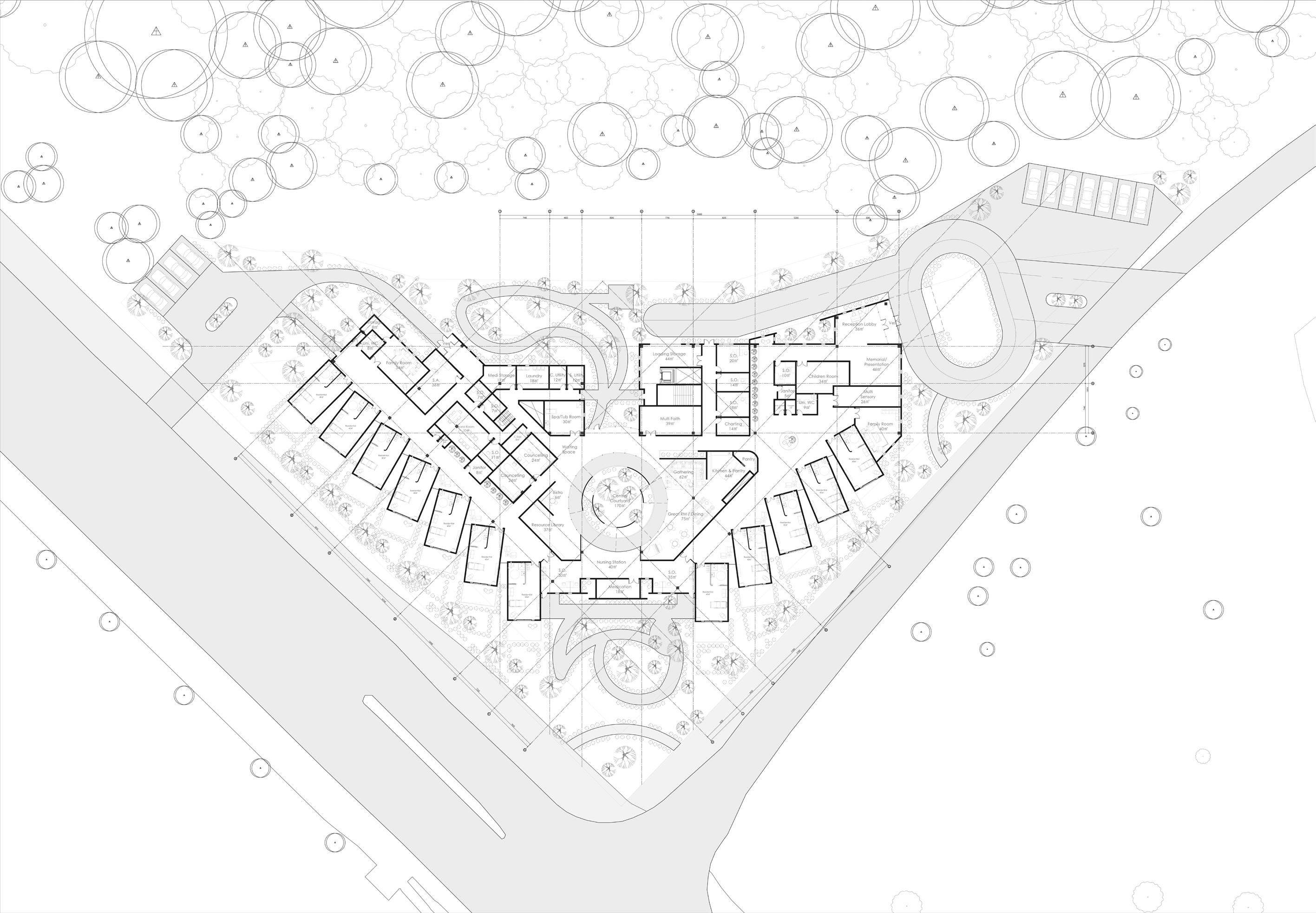 The design objective of the Kay Blair hospice is to create a warm and welcoming experience for those that occupies the space, and to allow patients to live in quality and to die in dignity. A design that is imagined for the Kay Blair hospice is to create a village-like layout, with individual houses of different function all located under one common roof, in one hospice space. The proposed design takes advantage of the local sun path to create a cozy and warm living environment for those that stays in the residential units.