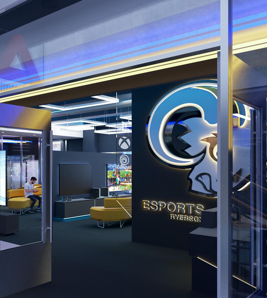 As part of the new E-sports popularity wave, Ryerson University is now beginning to establish a new club called “Ryerson esports”, where students and other members could be a part of the experience. As a result, the Ryerson esports club would need a space where they could meet up and practice. The proposed space is dedicated to the use of individual gaming and streaming, as well as competitive spaces for groups of friends and teams. The overall space could be divided into three areas, including the main console gaming lounge, the streaming labs, as well as the pc stations. With LED lights as the main decorating element, the overall spaces is surrounded by a savvy tech atmosphere.