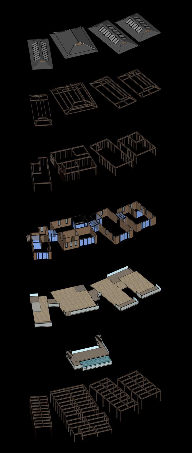 ROOF STRUCTURAL FRAME, CONNECTED WITH THE REST OF THE WOOD FRAME STRUCTURAL SYSTEM