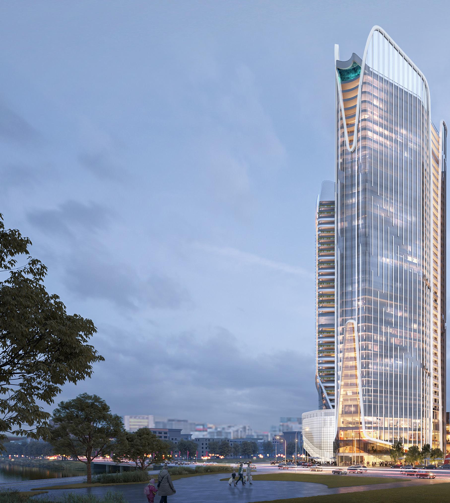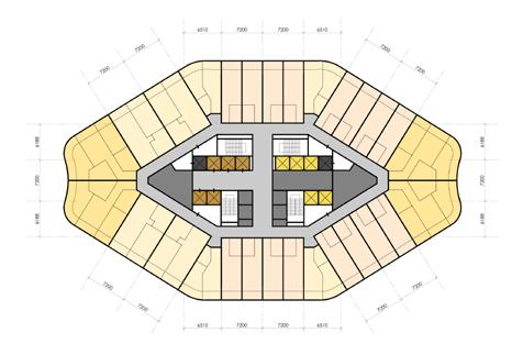 2 Apartment Tower blocks flank the Hotel and Serviced Apartment tower, The serrated perimeter outline of the apartment towers are inspired by the wavy edges of the Phoenix Flower petals, maximizing window areas and opportunity for views. 3 Separate tower formation allows larger gaps between the buildings, reducing the perception of bulkiness.