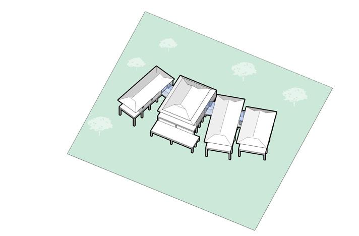 SMALL FORMS ARE CREATED BASED ON THE DIMENSION OF THE REQUIRED PROGRAMS. EACH INDIVIDUAL BUILDING CONTAINS RELATED PROGRAMS. A SMALL “VILLAGE” OF BUILDING IS FORMED