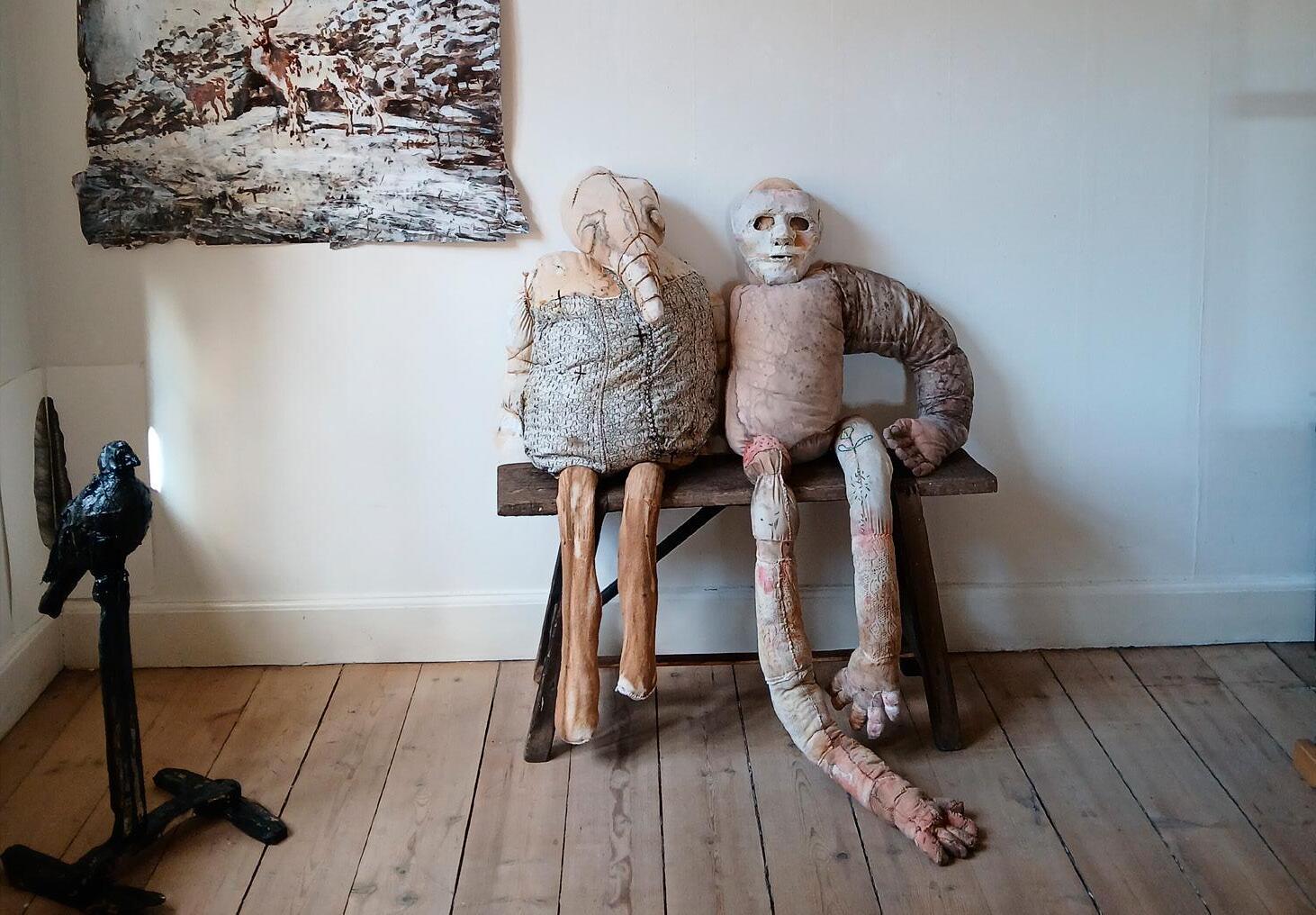Så strømmer det ind med medlemmer af kunstforeninger og andre besøgende. Flere hundrede gæster fylder atelieret hen over weekenden, og det summer af liv i hele præstegården. De besøgende i atelieret er nysgerrige og spørgelystne. Mange vil gerne høre om tilblivelsen af værkerne — både de færdige og dem som jeg er i gang med. Det er skønt med de mange gæster, men det er også dejligt, når hverdagen melder sig igen, og jeg har ro til at arbejde.