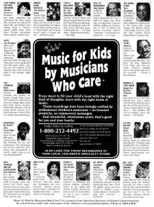 During its 4-year existence, AACE produced an impressive list of accomplishments: nationally televised awards, publications, and a marketing partnership over 150 independent producers of children’s music, television, film, and video.